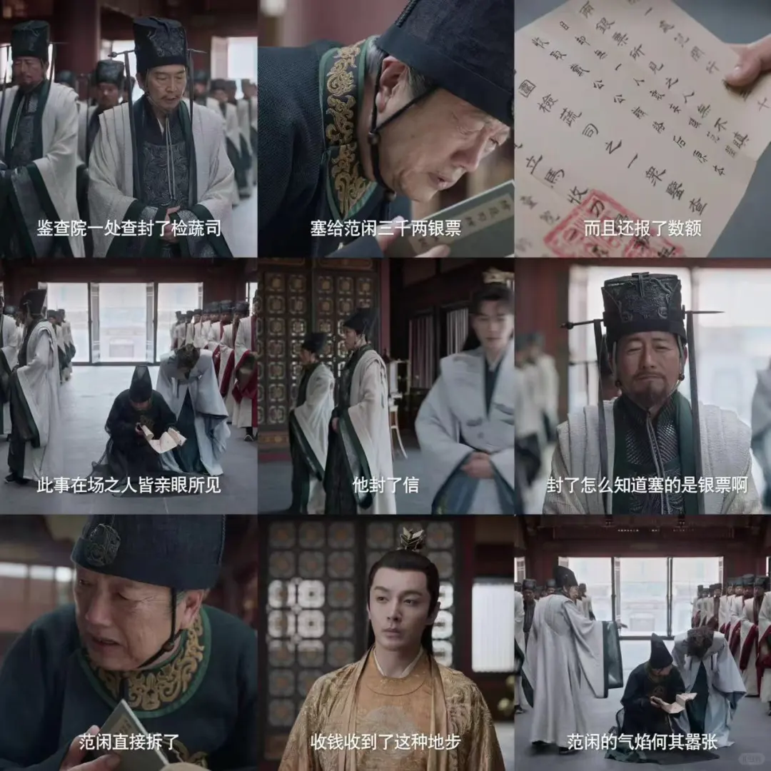二皇子和北齐勾结走 私中饱私囊,身为监察院提司的范闲很快就搜集到了二皇子门下官员的受贿证据。但碍于二皇子身份特殊,此事若是处理不当就会直接损害到庆帝和皇家的颜面,着实不好处理。无奈之下,范闲只能通过在大庭广众下受贿的举动来引起御史们的注意,从而利用他们弹劾的机会查到戴公公贪腐案,以此斩断二皇子的左膀右臂,达到清腐的目的。