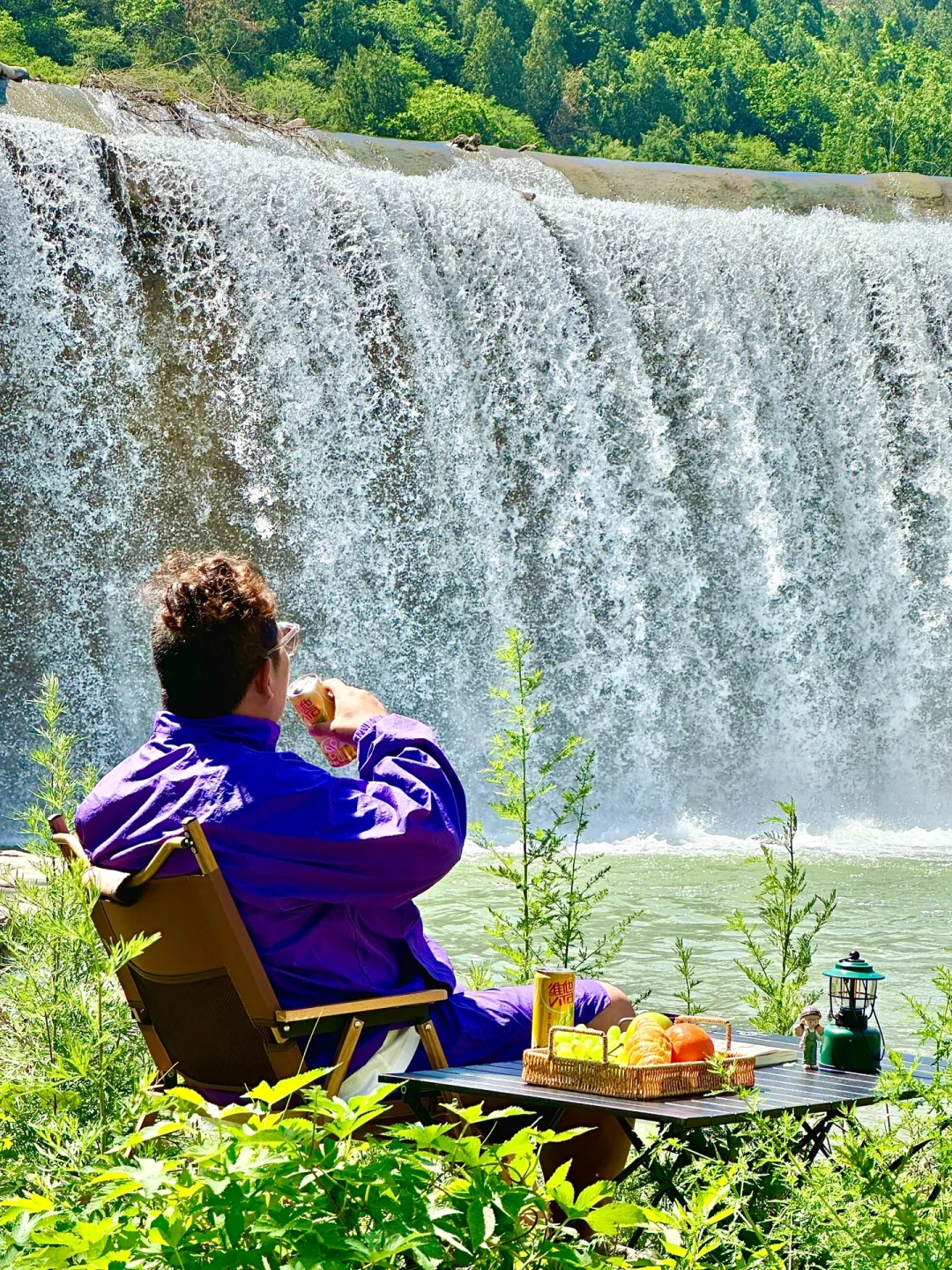 瀑布自己露营🏕️感觉无人秘境太舒服