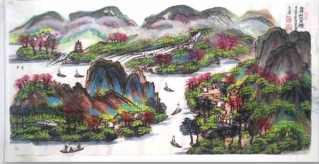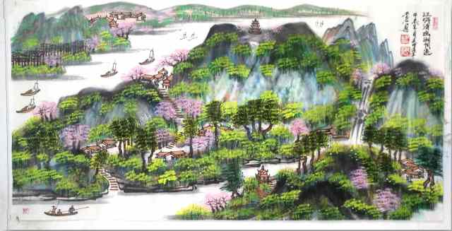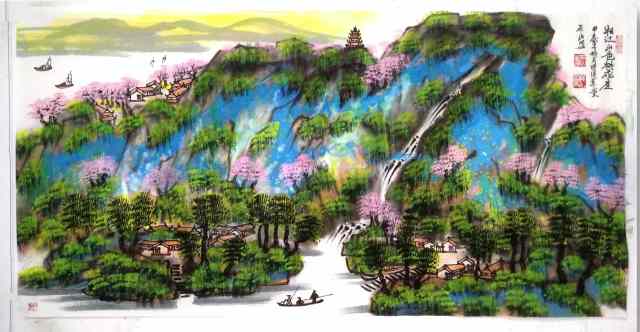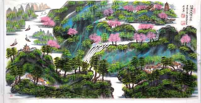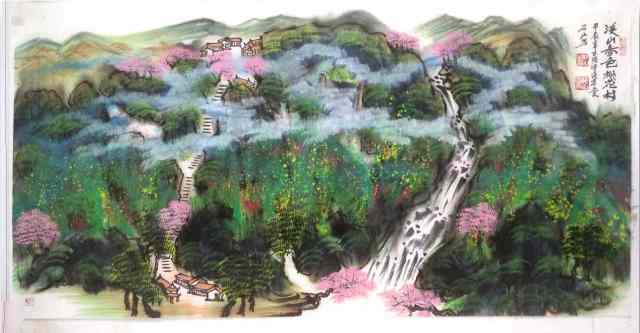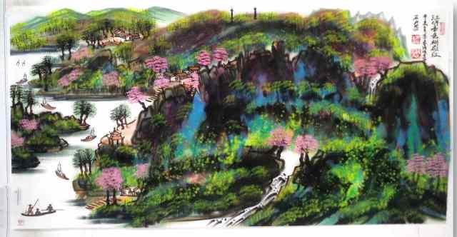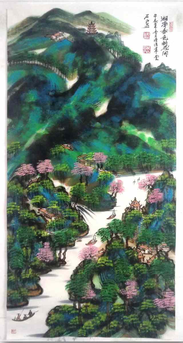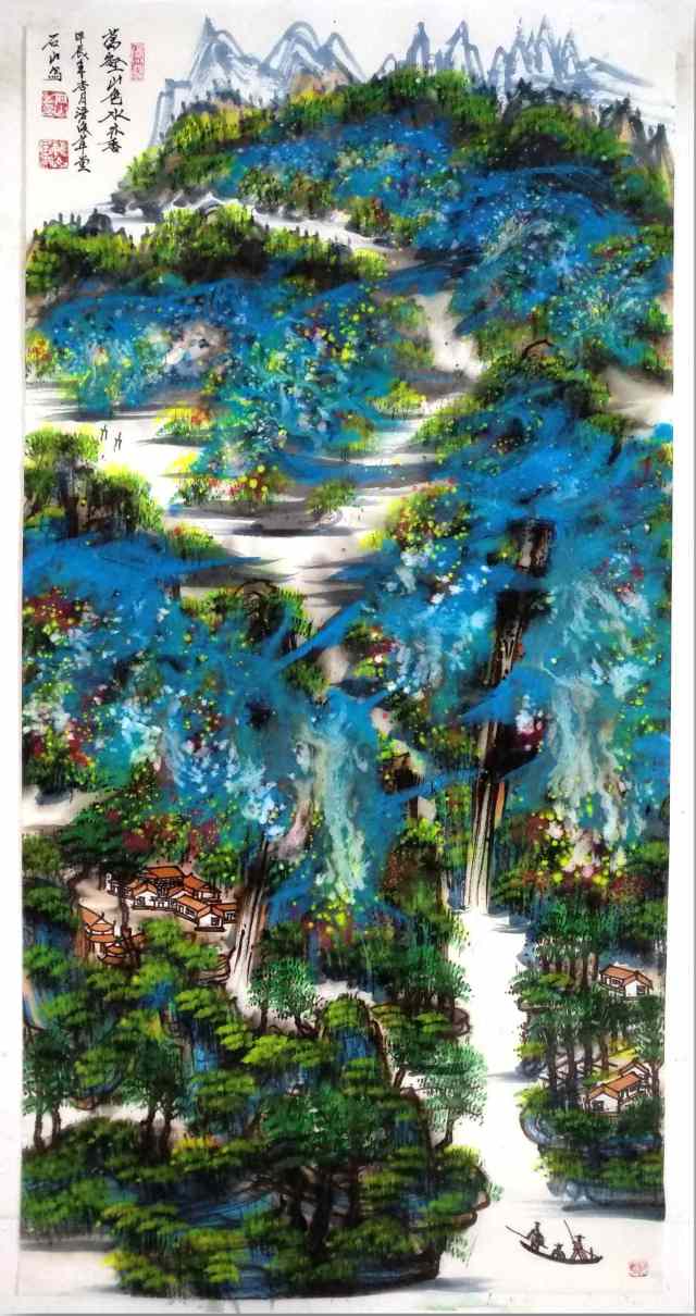 画家作画,是为自己心灵留影。谢石山的春染江南系列所描绘的山水世界,通过不断反复超越自己的写意,表现幽绝的墨色氤氲色彩境界,将山水画的程式融入泼墨、泼彩、破墨与干笔皴擦、湿笔渲染等笔墨语言,综合呈现了缤纷多彩的艺术形象。画家对传统山水画的苦苦追求,通过画笔体现的禅意“无相法门,无我无法”,让时空追求超越永恒的内涵,达到了惊人心魄的视角冲击力,它体现的现代艺术是中国的、也是世界的。