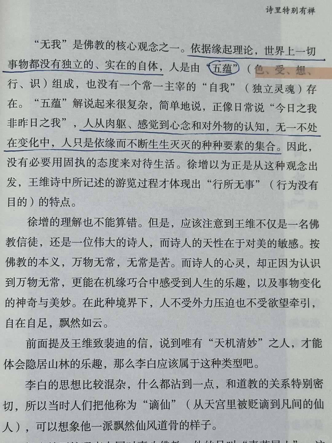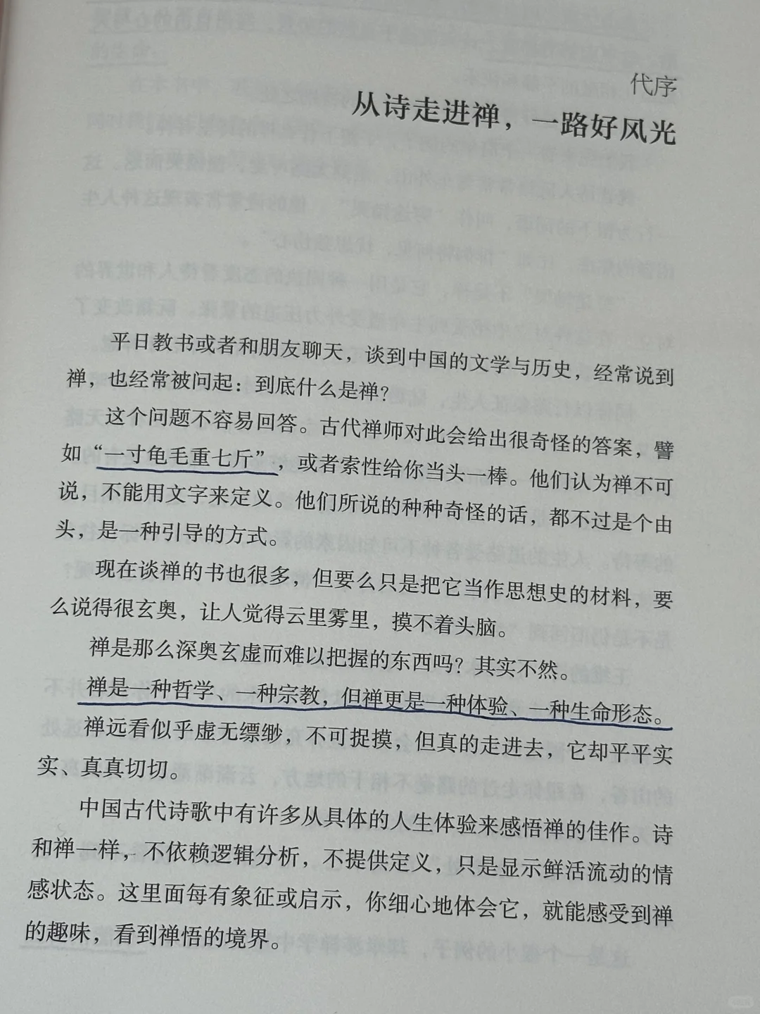 🔵禅是中国文化中颇为玄妙的一个部分,也是与人心颇能互相打动的一个部分。禅远看似乎虚无缥缈,不可捉摸,但真的走进去,它却平平实实、真真切切。中国古代诗歌中有许多从具体的人生体验来感悟禅的佳作。诗和禅一样,不提供定义,只是显示鲜活流动的情感状态,你细心地体会它,能感受到禅的趣味,看到禅悟的境界。