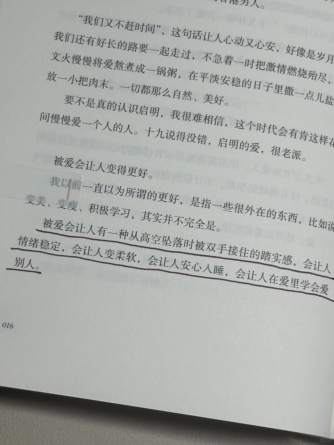 被爱会让人有一种从高空坠落时被双手接住的踏实感,会让人情绪稳定,会让人变柔软,会让人安心入睡,会让人在爱里学会爱别人。