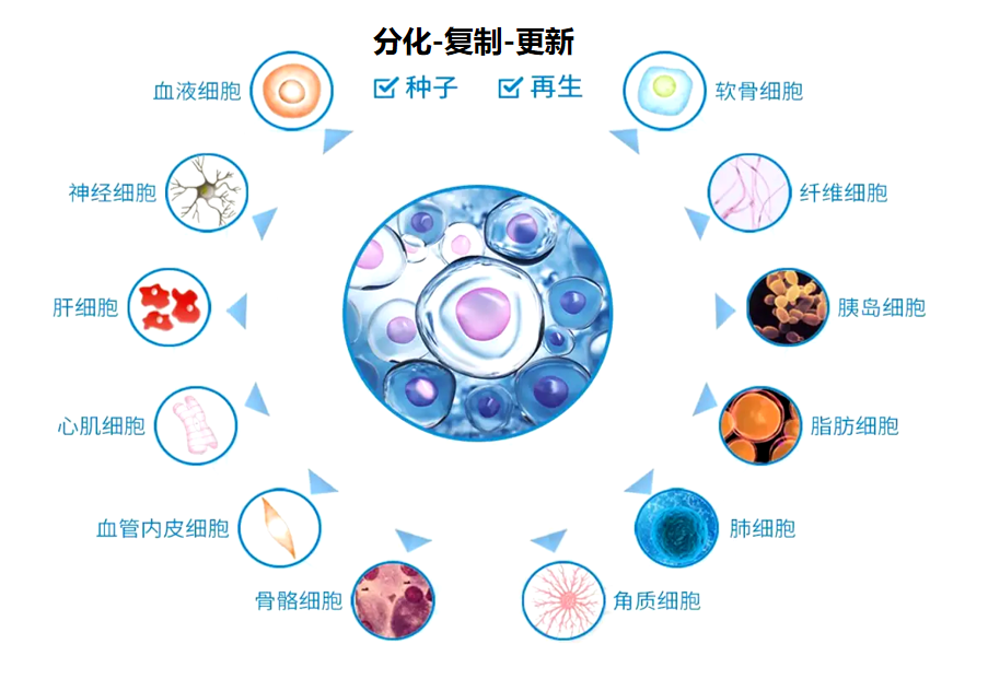 干细胞:人体的修复大师干细胞是一类具有自我更新和多向分化潜能的细胞。当组织受损或发生疾病时,干细胞能够响应体内信号,迁移至损伤部位,在局部微环境的诱导下分化为所需的功能细胞,替代衰老或受损细胞,从而实现组织修复与再生。