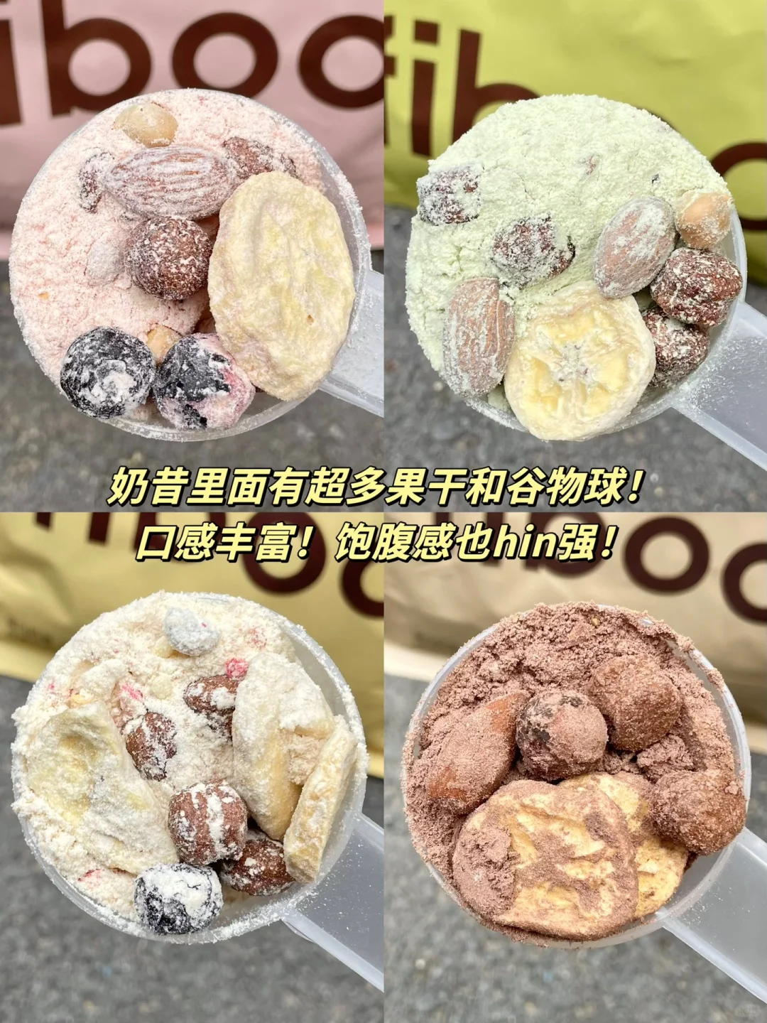 奶昔里面超多料!各种坚果果干还有谷物球!口感丰富饱腹感也hin强!