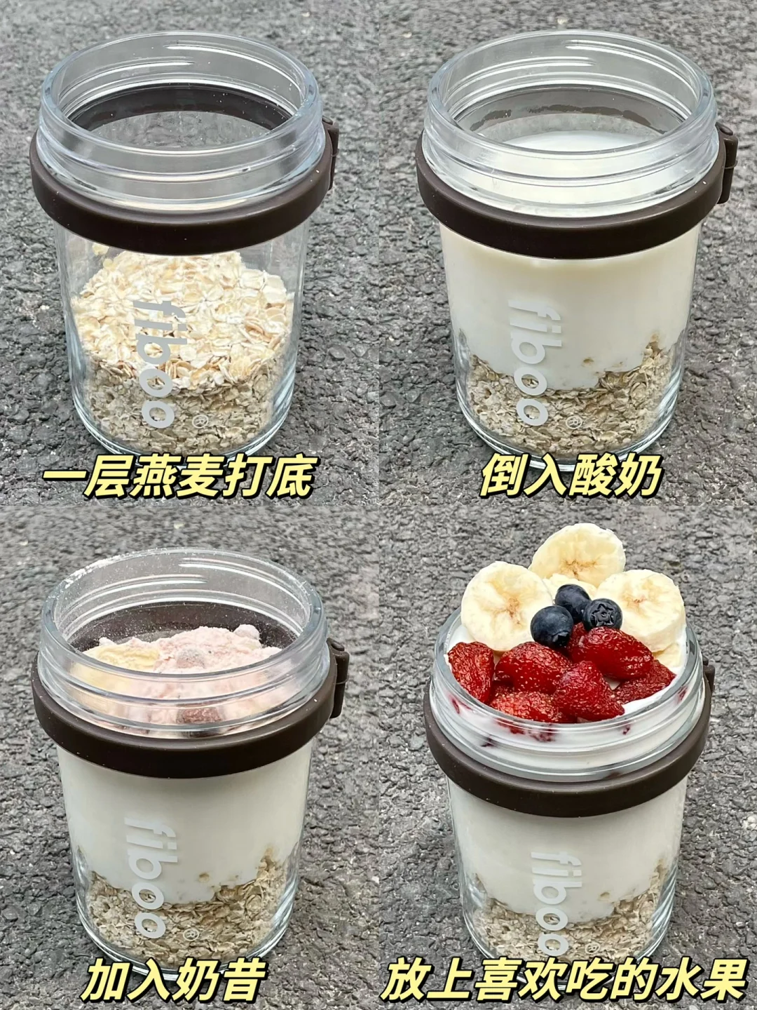 搭配酸奶,燕麦和各种水果用来做隔夜燕麦杯再合适不过了!颜值也超高!
