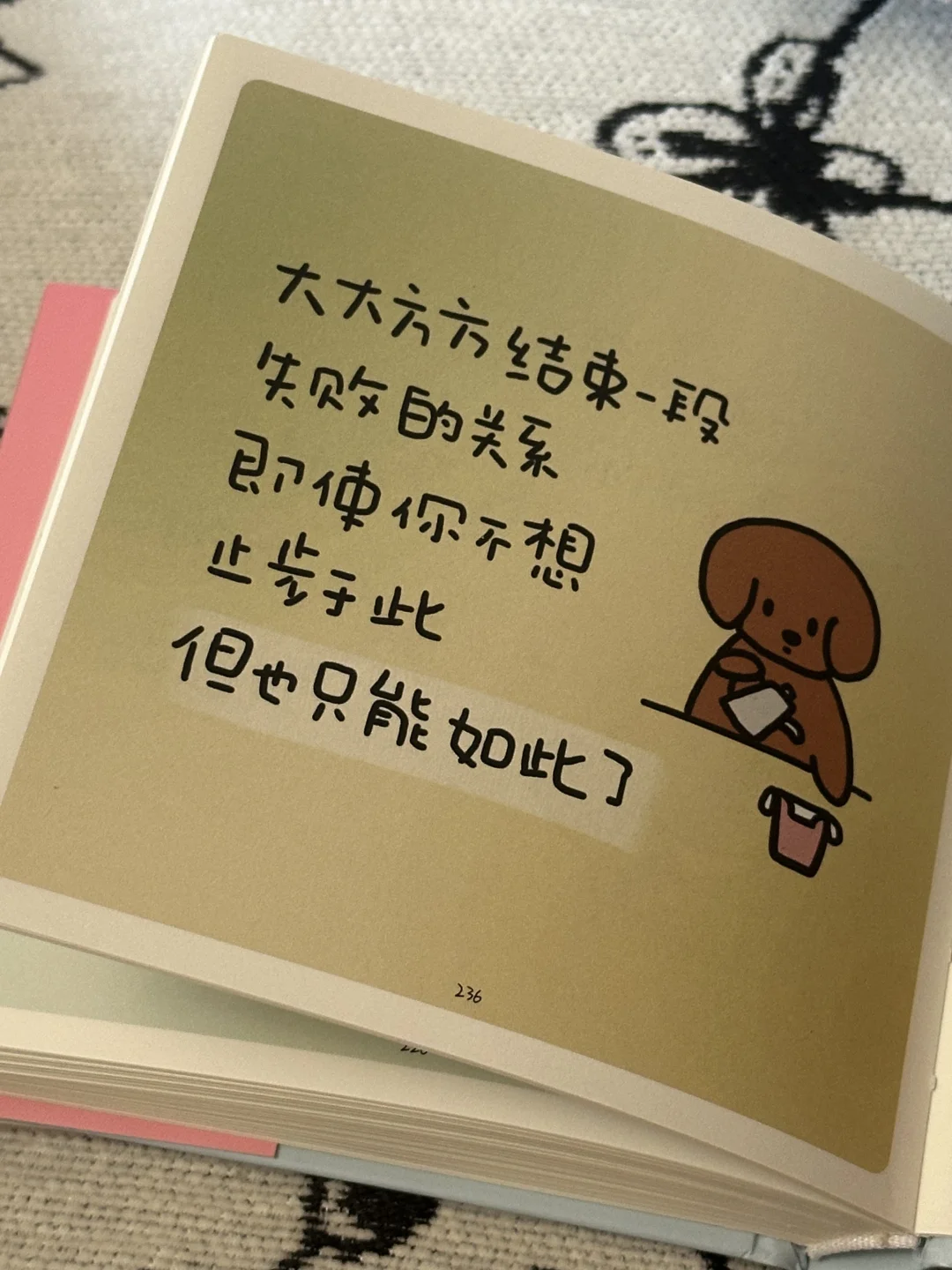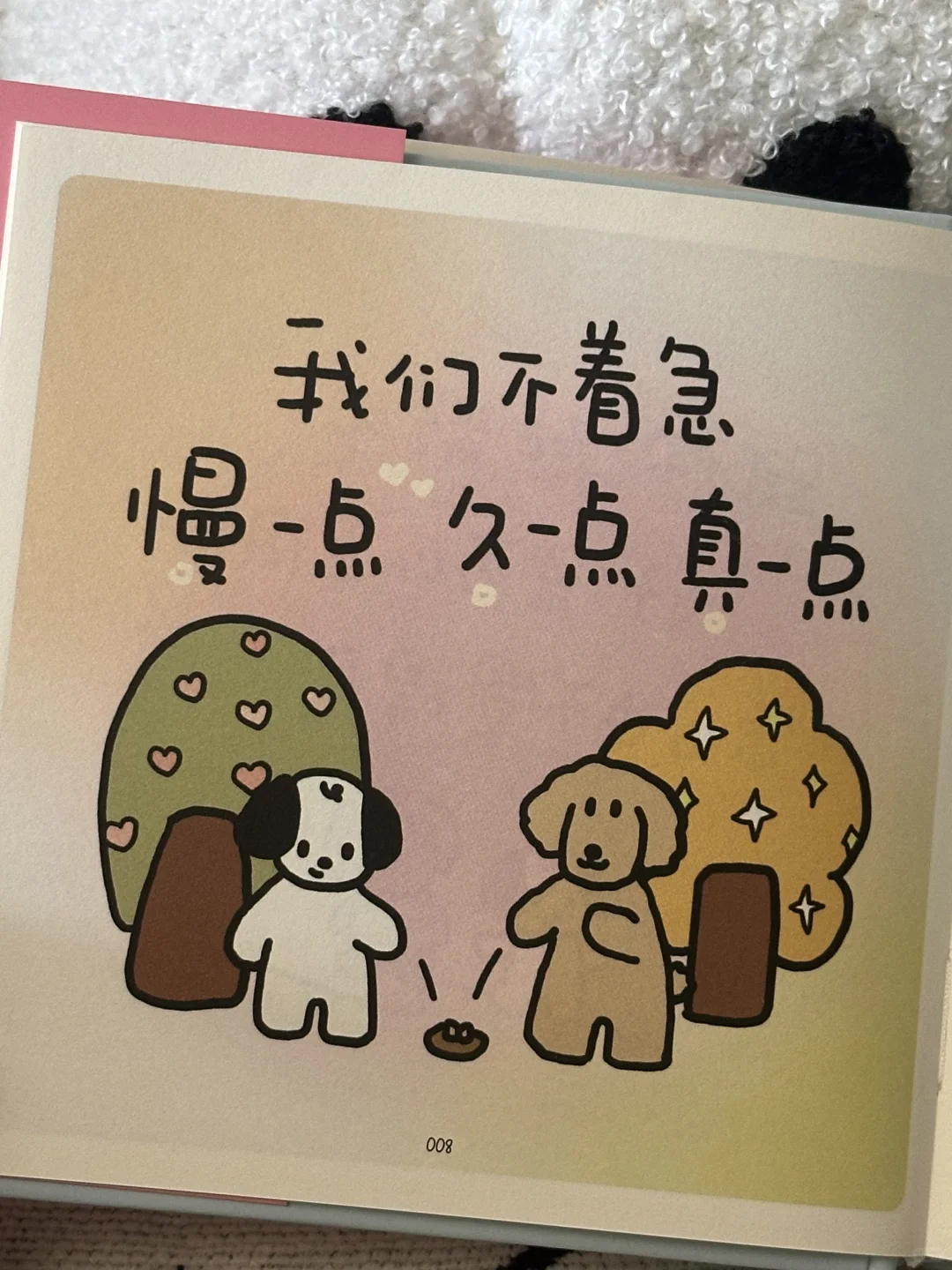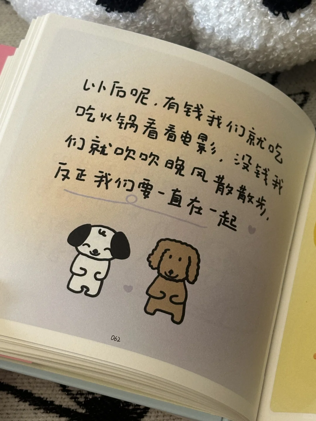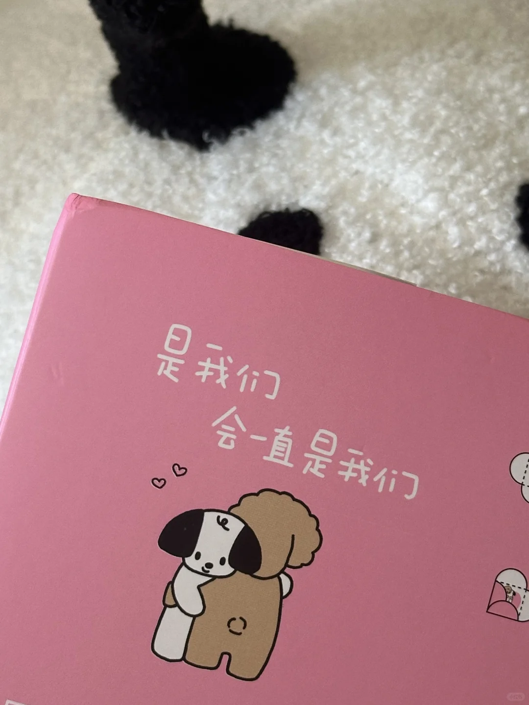 这本书简直成了我最近的治愈神器,巴掌大的一本,配上多巴胺气息浓郁的粉色封面,两只线条小狗紧紧抱在一起,这画面一下子就清空了心里的各种杂乱烦闷,这种轻快的感觉谁懂啊!