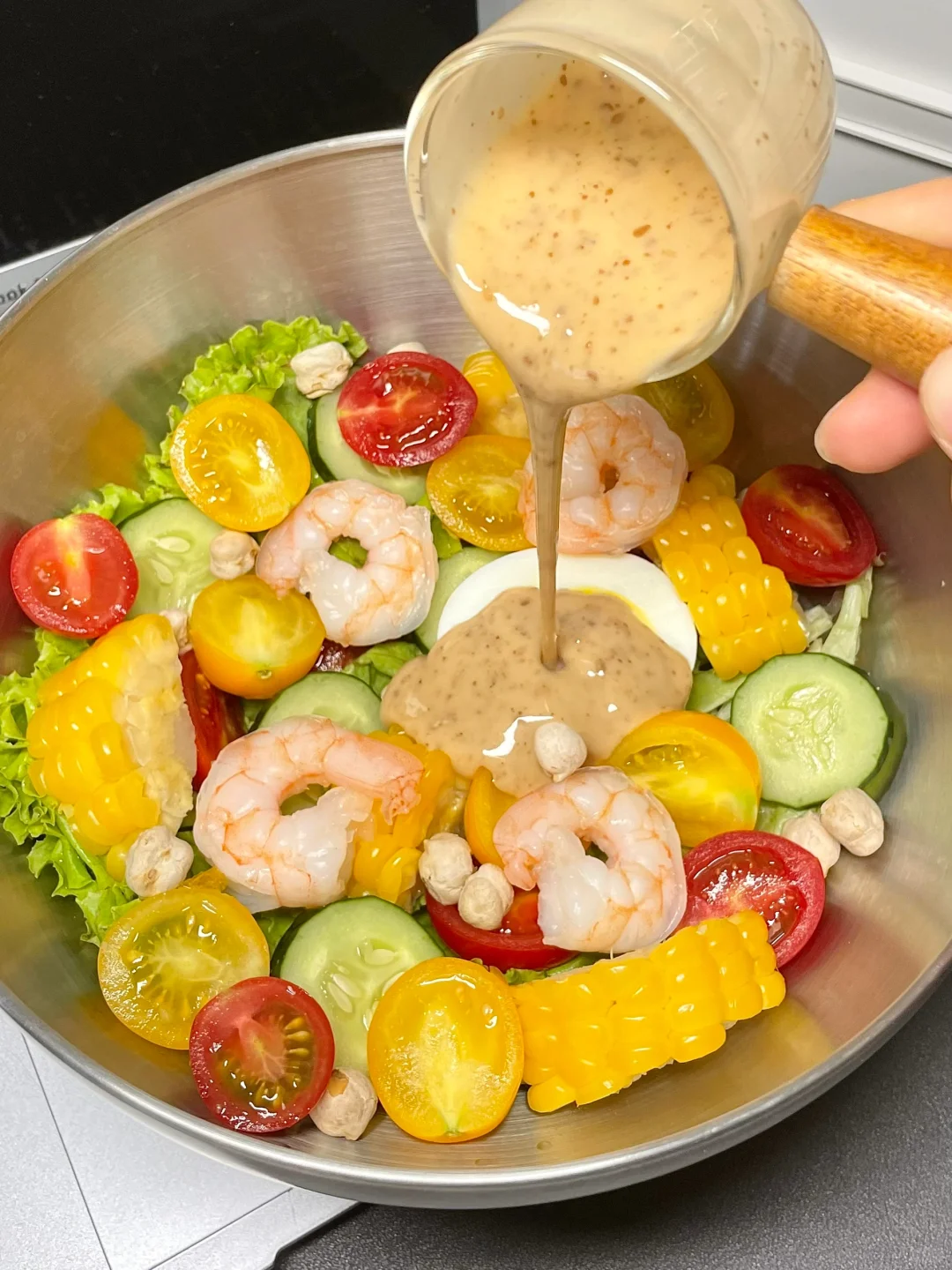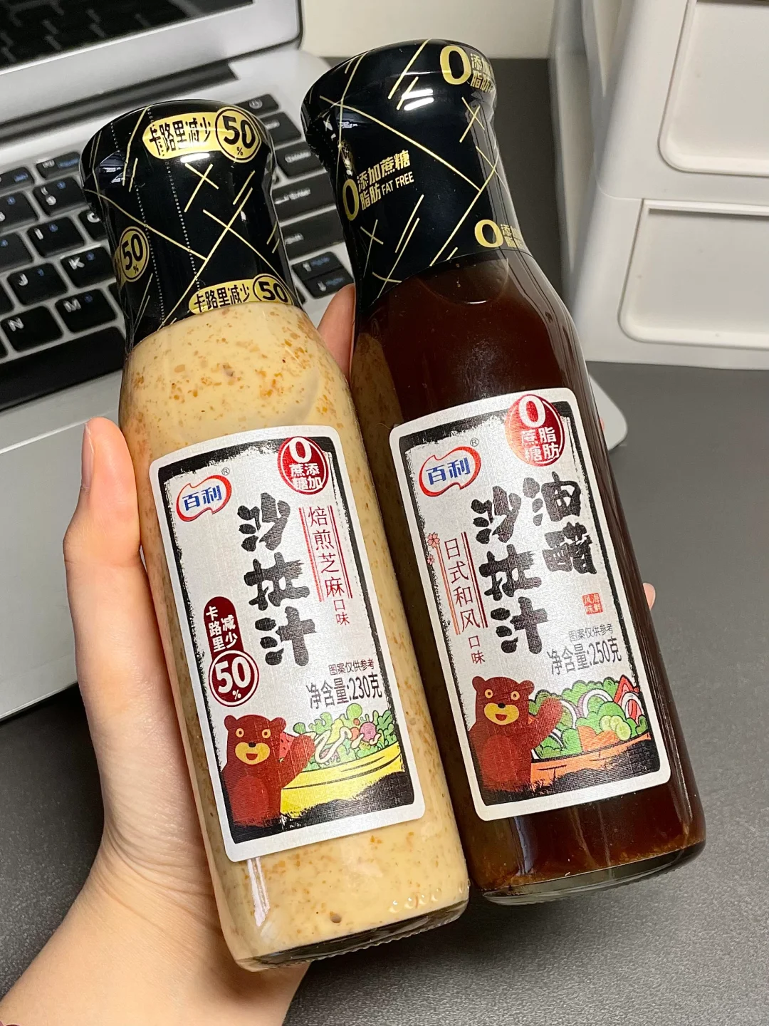 自从入手了这个沙拉汁再也不点轻食外卖了! 自己提前备好各种蔬菜🥬肉🥩和主食!淋上沙拉汁就可以开吃!简直跟轻食店一个味! 焙煎芝麻口味沙拉汁质地是偏浓稠的那种!咸香还带点甜~味道很鲜!还带有芝麻的香气! 油醋沙拉汁很适合爱酸的姐妹们!酸酸的特别开胃! 而且热量都不高!不用担心月半! 减减期有它太幸福了!!💗