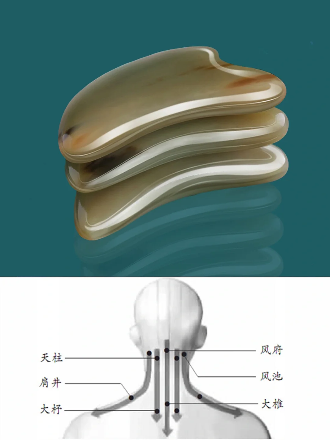 🔘淡化颈纹:沿着锁骨至下颌,从下往上刮,30组。