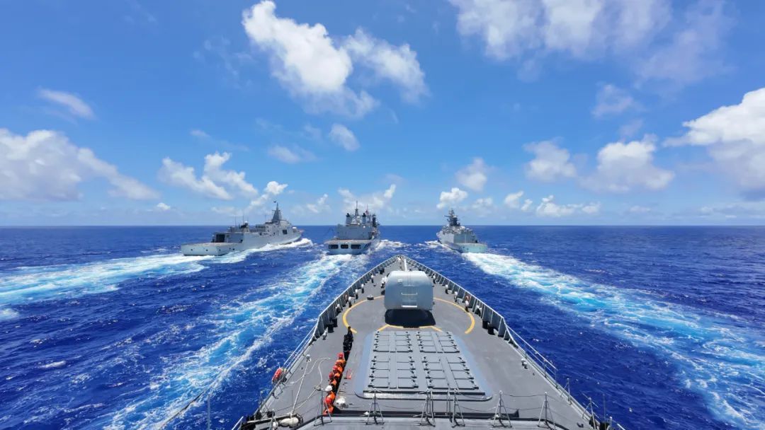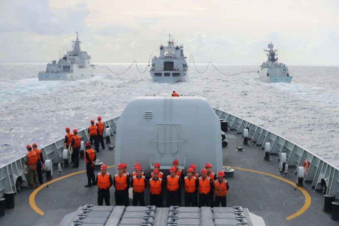 #烽火问鼎计划#近日,海军大连舰、广州舰、骆马湖舰等多艘舰艇组成编队开展战时航行补给、舰载直升机战备物资转运综合演练。(南部战区)