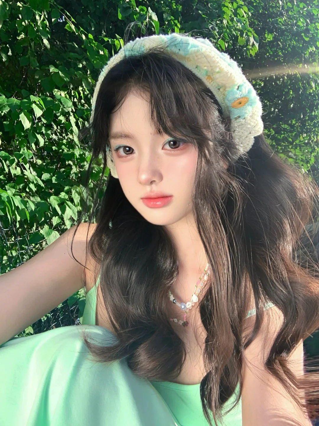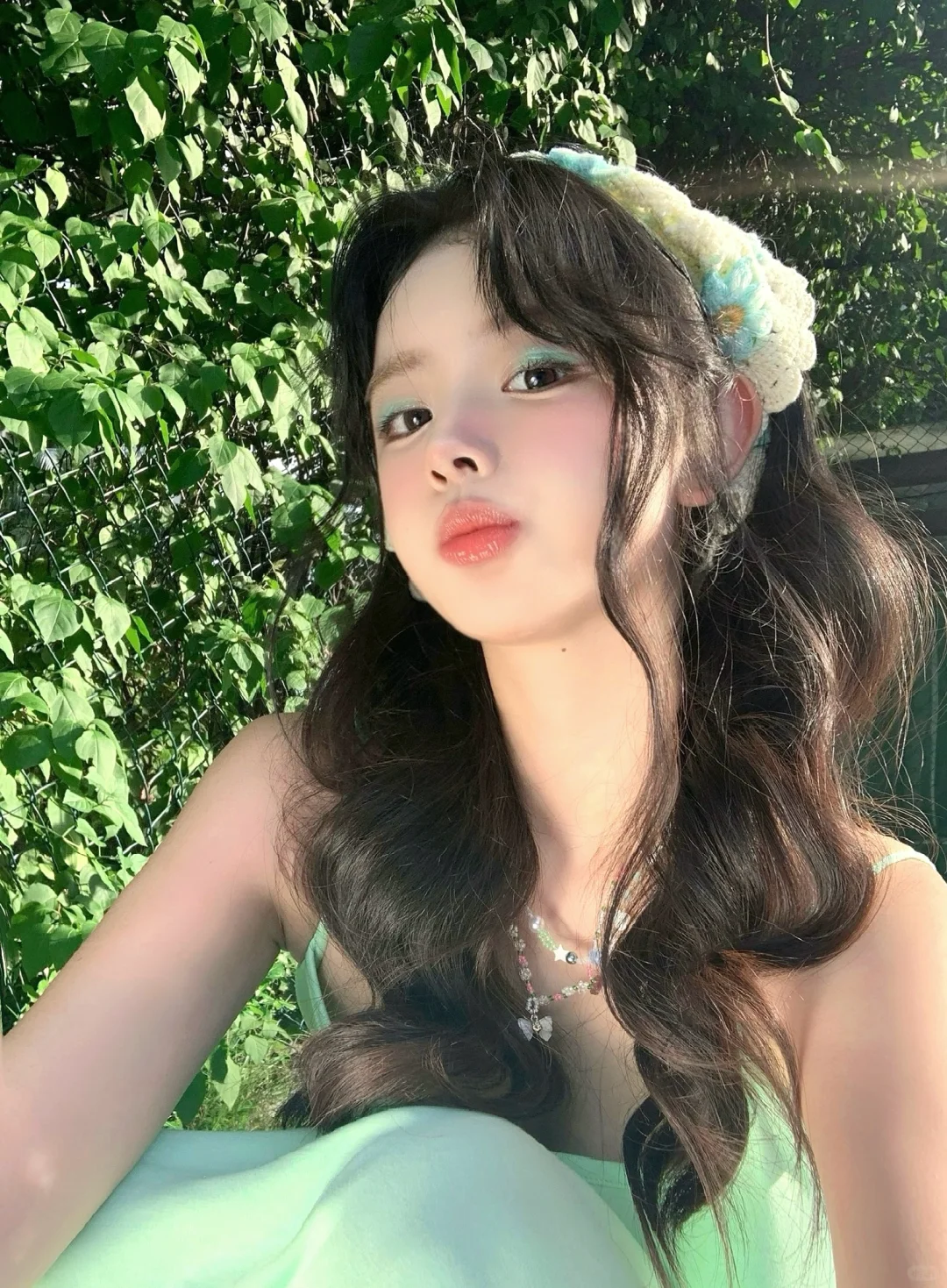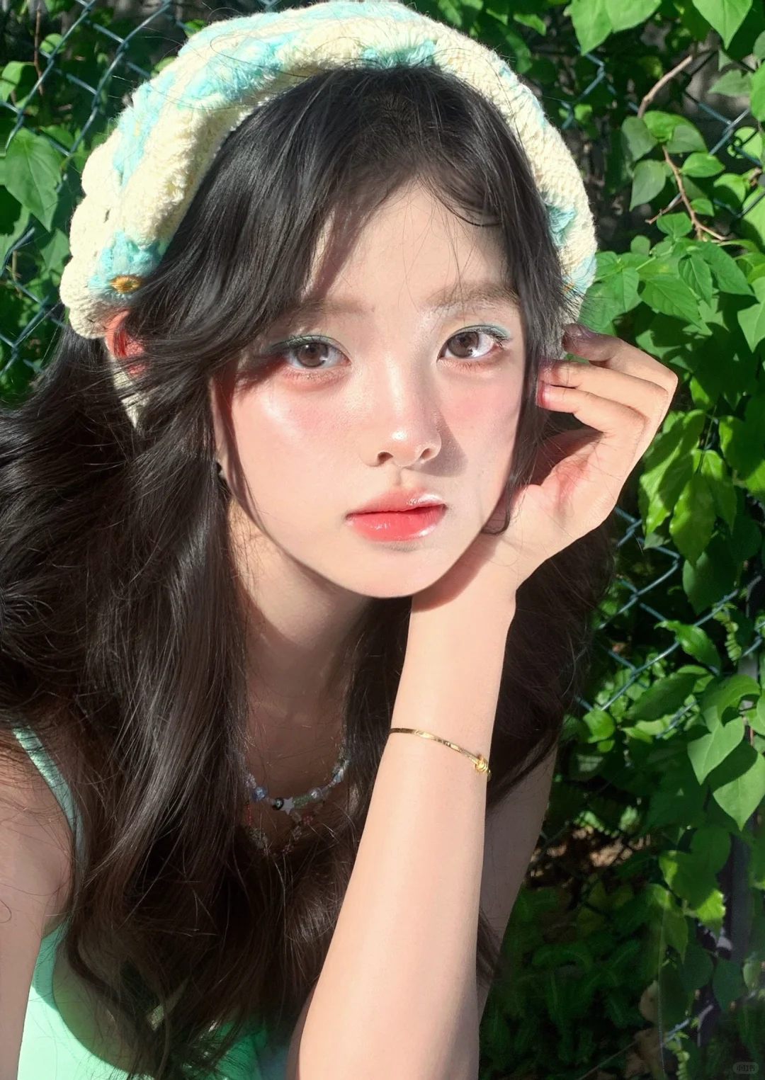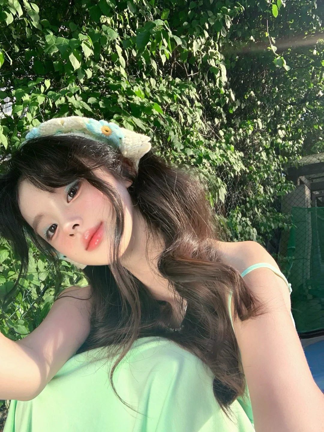 绿野仙踪的赶脚~ 出太阳的时候去楼下拍照片啦 绿色系妆容真的很视觉降温! 高光点缀➕唇蜜很配啦!
