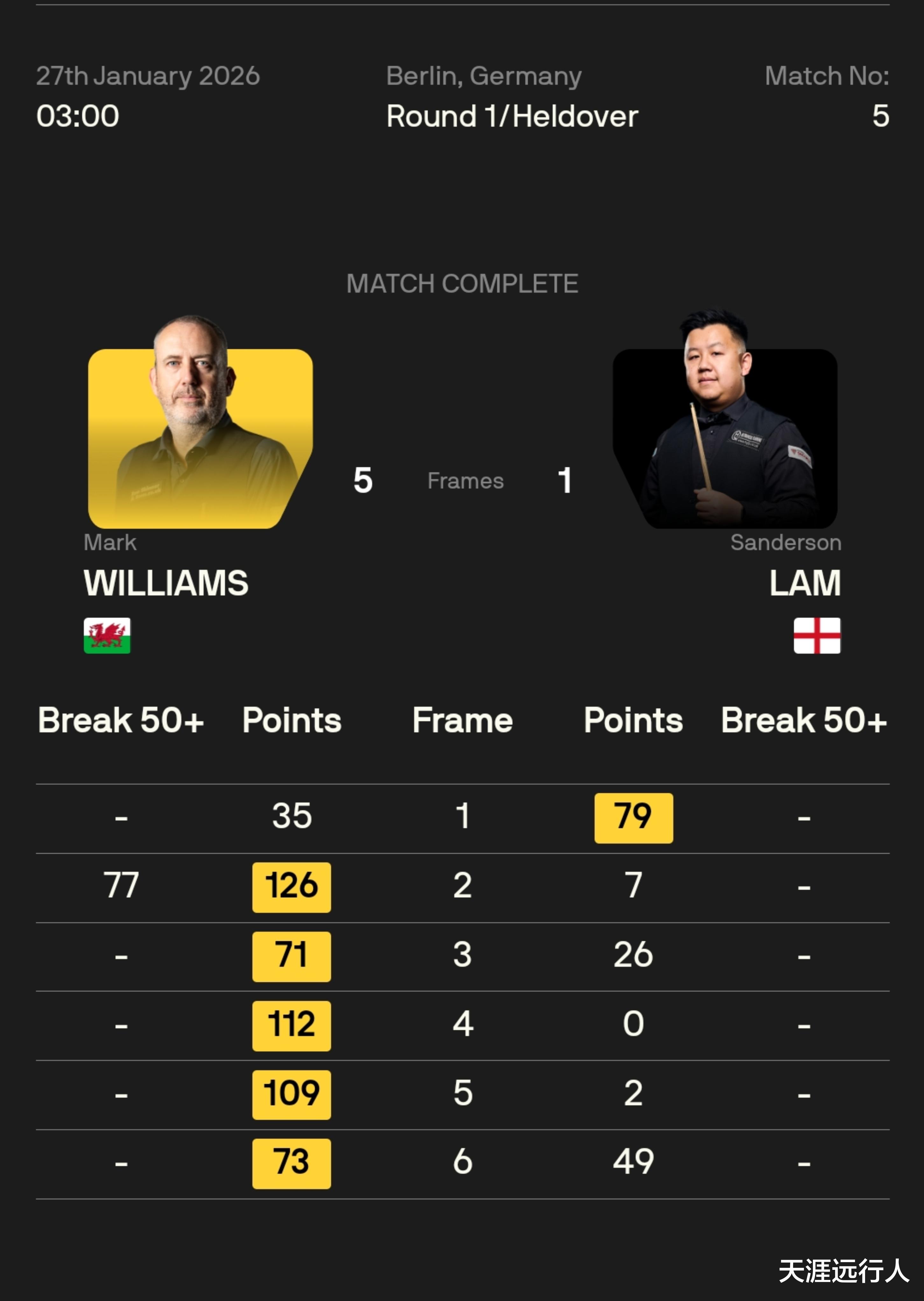 马克·威廉姆斯 5-1 林杉峰