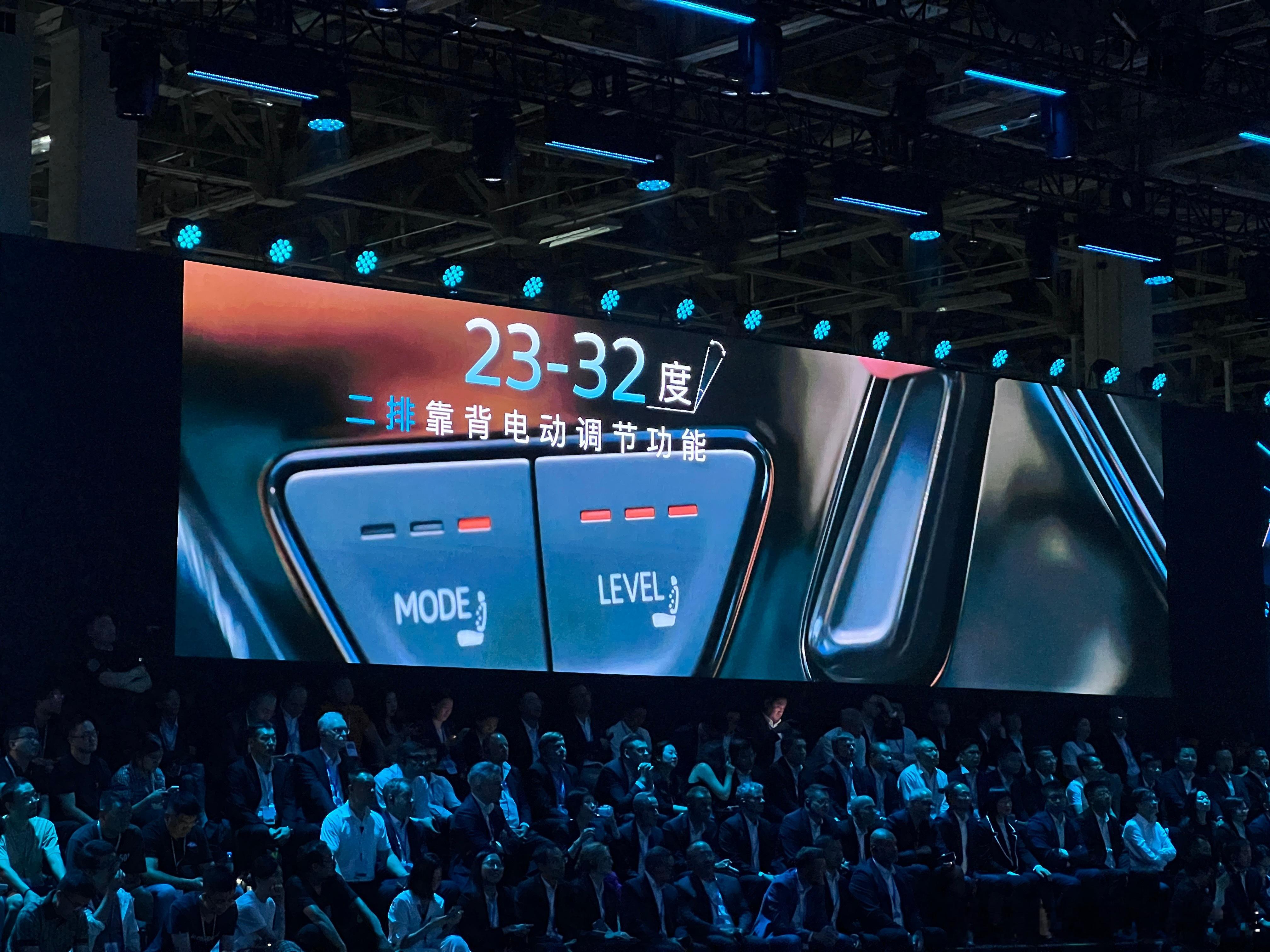3、副驾驶配有11.6英寸娱乐屏,后排座椅配备了通风、加热和按摩,且通风方式为吸风。二排座椅靠背支持电动角度可调,范围是23~32°。