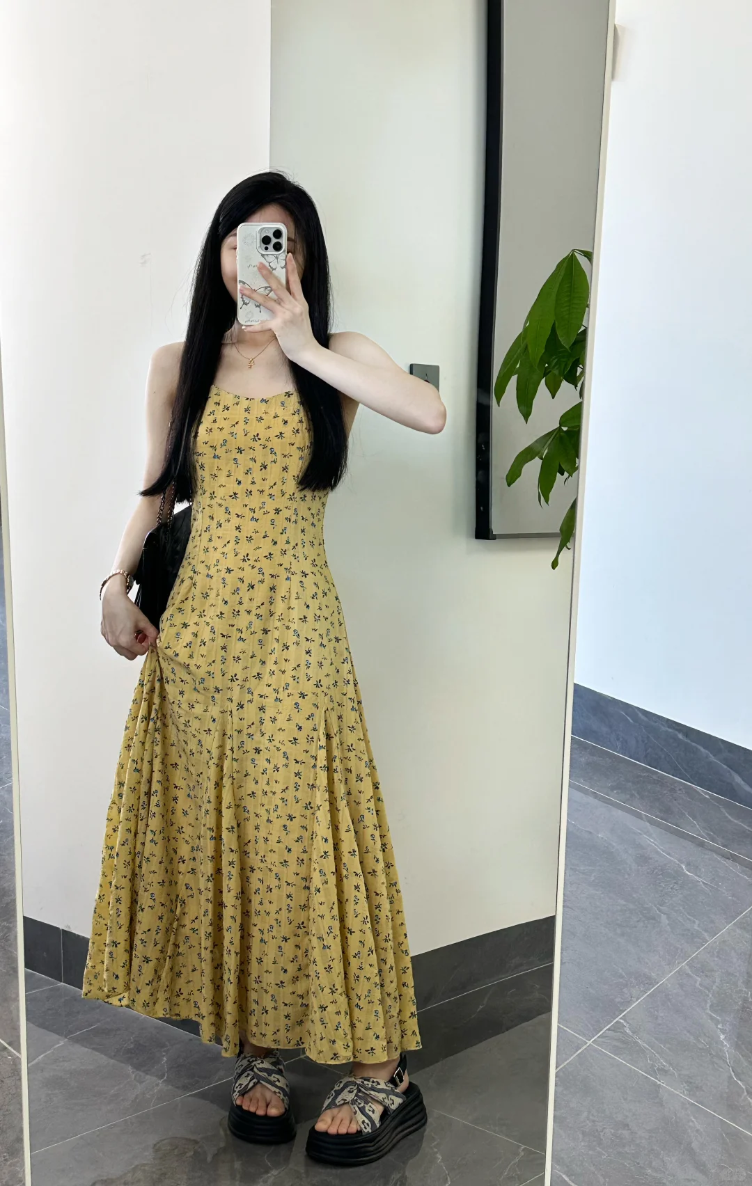 156/88ootd 挖到一款适合海边度假穿的碎花吊带裙~ 鱼尾裙摆有种摇曳生姿的美! 🩰前几天去泰国玩穿的就是这双鞋子!厚底鞋噂嘟适合小个子,舒服又好看[喝奶茶R][喝奶茶R]