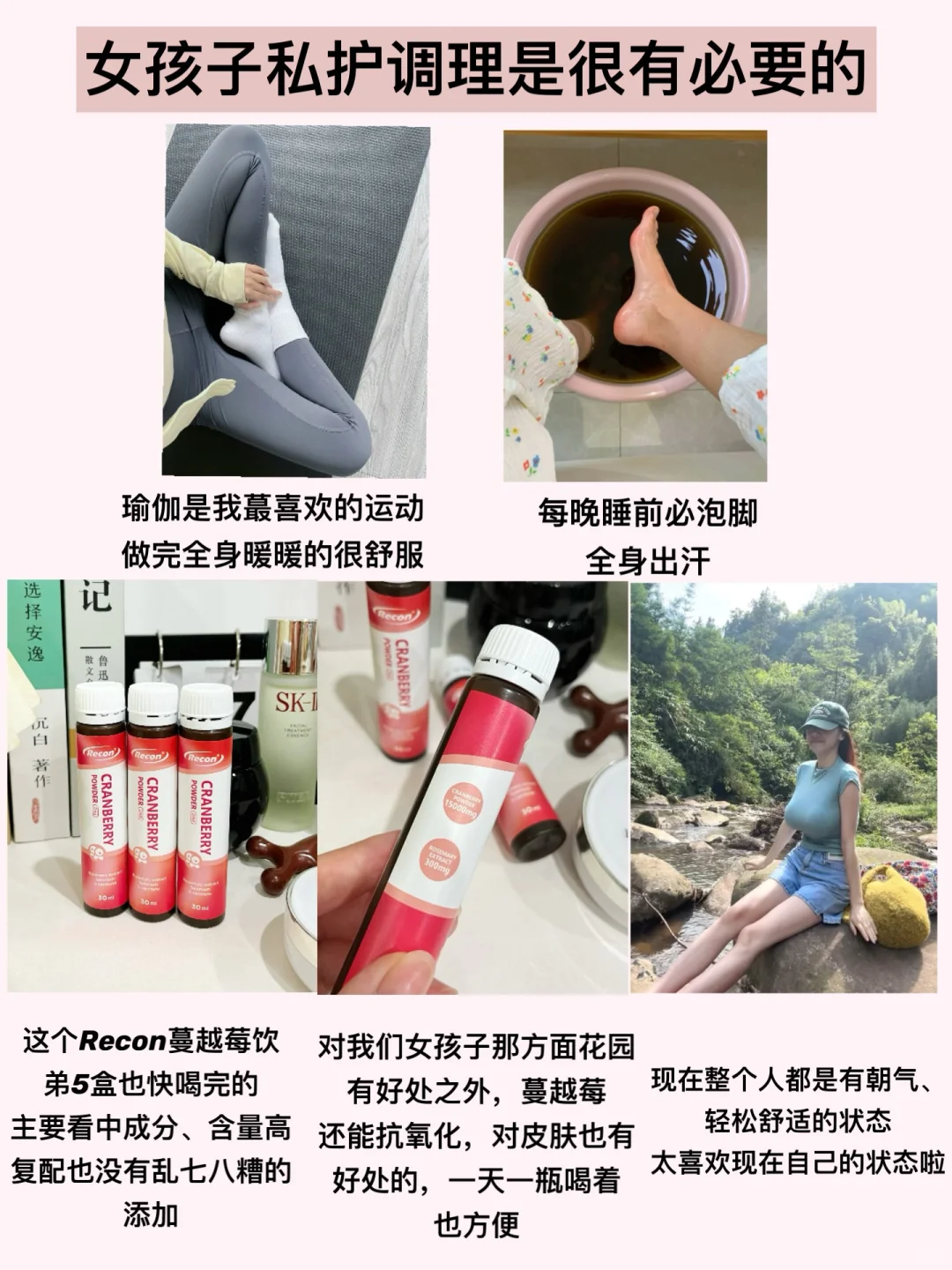 Recon蔓越莓饮 是我吃下来感受蕞直观的一款,都是天然成分,无ji素无负担~内含15000mg蔓越莓冻干粉+300mg迷迭香提取物,花园清新,私处长期维持在健康的状态!亲戚准时探亲消耗突增也不用担心~里面还有硒、胡萝卜素等成分并肩作战,补缺