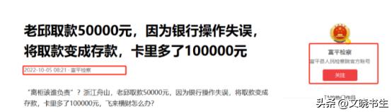 银行傻眼了!浙江舟山,一男子去银行取50000元,没想到,银行工作人员出现离奇失误,电脑操作时,将取款变成存款,银行因未到盘账时间,并未发觉,男子面对10万元飞来横财,此后的一顿骚操作,银行肺都气炸了! 麻烦看官老爷们右上角点击一下“关注”,方便您进行讨论和分享!(信息来源:富平检察2022年10月5日——因为银行操作失误,将取款变成存款) 浙江舟山的邱先生经营着一家小型生意,某天由于资金周转的需要,他前往当地银行取款50000元,然而这次看似平常的取款却引发了一连串令人瞠目结舌的离奇事件。 邱先生来到银行,填写好取款单并递给柜员,柜员在操作电脑时,可能是由于一时疏忽,将取款50000元的操作错误地输入为存款50000元。 邱先生取到现金后,便离开了银行,然而他并没有意识到银行的这次操作失误,直到他收到一条银行发来的短信通知。 短信显示,邱先生的账户余额不仅没有减少50000元,反而多出了50000元,他惊讶地发现,自己的账户余额竟然变成了10万多元。 对于邱先生来说,这笔意外的飞来横财无疑是一份大礼。 面对这意外的财富,邱先生并没有选择与银行联系或澄清事情的真相,而是利用这笔钱还债购物。 他认为,既然银行没有发现问题,他也不需要主动去告知,很快邱先生用这笔钱偿还了部分债务,并购买了一些生活必需品。 但是银行并不是毫无察觉,虽然当天并未发现错误,但在例行盘账时,银行工作人员发现账目不对,经过仔细核对后,意识到是操作失误导致了邱先生的账户余额增加。 银行立即联系邱先生,要求他归还这多出来的50000元,但对邱先生以“离柜概不负责”为由拒绝归还。 他认为,自己并没有主动从银行获取这笔钱,银行的操作失误不应由他负责,银行的多次交涉均无果,决定将邱先生起诉至法院。 案件很快进入了司法程序,法院审理此案后,判定邱先生为不当得利,需要归还不属于自己的款项。 在庭审过程中,邱先生辩称自己没有主动获取这笔钱,并且已经将钱用掉,无力归还。 法院认为,邱先生在明知款项来源有误的情况下,仍然使用这笔钱,构成了不当得利,最终法院判决邱先生不仅要归还这50000元,还需承担相应的利息和诉讼费用。 尽管法院判决明确,但邱先生由于已将这笔钱花完,无力偿还。 他不仅面临着巨大的财务压力,还被列入了失信人名单,这意味着他在未来的生活中,将面临诸多不便和限制。 邱先生的经历给我们上了一堂生动的法律课,不当得利不仅仅是经济上的问题,更是法律和道德层面的考验,即便是意外获得的财物,也应该遵循合法、合规的原则进行处理。 这起事件引发了广泛的讨论,一方面银行的操作失误确实存在管理上的漏洞,但另一方面,邱先生作为一个普通公民,面对这笔意外之财时的处理方式,也暴露了其对法律认知的不足。 诚信是社会的基石,而法律则是保障社会秩序的重要手段,邱先生的遭遇提醒我们,无论何时何地,都应以诚信为本,遵守法律法规。