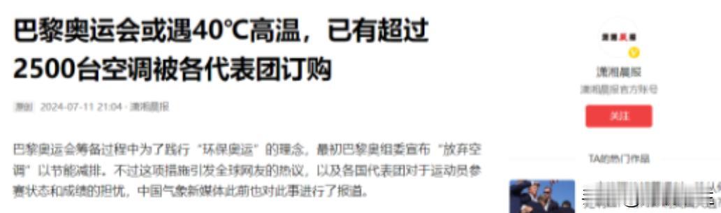 不得不说,此次法国巴黎举办的奥运会,几乎全面“碾压”中国!今年的法国巴黎奥运会举办的,简直是“碾压”中国,两者简直就是天壤之别,无数网友纷纷表示法国奥运会:“无敌了” 麻烦看官老爷们右上角点击一下“关注”,方便您进行讨论和分享!(信息来源:潇湘晨报2024年7月11日《巴黎奥运会或遇40℃高温,已有超过2500台空调被各代表团订购》) 2024年7月26日至8月11日,法国将迎来百年来首次的夏季奥运会。 在全球瞩目的期待中,巴黎以“极简主义”的风格震撼了世界,展现了与以往奢华奥运截然不同的面貌。 然而,这一切却引发了人们对中法两国举办奥运会方式的广泛讨论,许多网友纷纷表示,巴黎奥运会简直“无敌了”。 从一开始,巴黎奥组委就明确了节俭、环保的原则,他们从简朴的新闻发布会布置开始,彻底颠覆了人们对奥运会的传统印象。 与2008年北京奥运会的规模宏大、场面壮观不同,巴黎奥组委选择充分利用现有设施,法兰西体育场承担田径和足球比赛,游泳和水球比赛则在塞纳河中进行。 巴黎的这一做法不仅节省了大量建设费用,还大大减少了对环境的影响。 这种环保、简约的理念得到了很多环保主义者的赞赏,也成为本次奥运会的一大亮点。 但是,面对高温天气的挑战,巴黎的极简主义风格也引发了不少争议。 气象专家预测巴黎将在奥运会期间迎来极端高温,最高气温可能超过40摄氏度。但奥组委最初决定不为运动员村配备空调,这一决定立刻在全球体育界引发轩然大波。 许多运动员和教练纷纷表示,在高温下比赛不仅影响发挥,还可能对身体健康造成严重威胁。 面对各方质疑,奥组委最终做出了妥协,允许各国自行出资为运动员购买或租赁空调,这一决定又引发了新的争议。 有人认为,这可能导致经济实力差异影响公平竞争,经济实力强的国家可以为运动员提供更好的条件,而经济实力弱的国家则只能忍受高温。 巴黎奥运会筹备工作的不够细致周全,反映了中法两国在文化理念上的巨大差异。 中国在举办2008年北京奥运会时,追求的是尽善尽美,力求通过这场盛会向世界展示国家的强大和繁荣。 为了这一目标,北京不惜投入巨资建设鸟巢、水立方等世界级的体育场馆,每一个细节都经过精心设计和安排,力求给世界留下深刻的印象。 而法国人则更为浪漫随性,更注重环保和简约,他们认为奥运会的核心是体育精神,而不是奢华的场馆和繁复的安排。 也正是这样的原因,巴黎奥组委在筹备过程中更多地考虑了节俭和环保,而非一味追求华丽的外表。 面对巴黎奥运会的种种安排,网友们展开了热烈的讨论。 有人认为,巴黎奥运会的极简主义风格是一种回归体育本质的尝试,值得赞赏。 但是,也有不少人对巴黎奥运会的简陋条件提出了批评,没有空调的运动员村,在40度的高温下比赛,这简直是在拿运动员的健康开玩笑。 通过对比2008年北京奥运会和2024年巴黎奥运会,我们不难发现中法两国在许多方面存在的差异。 北京奥运会展现的是中国的实力和雄心,通过奢华的场馆和精心的安排,向世界展示了一个现代化的中国。 而巴黎奥运会则更多地体现了法国人对简约和环保的追求,强调的是体育的本质和精神。 无论是北京的宏大壮观,还是巴黎的简约环保,奥运会的核心始终是运动员的拼搏和体育精神的传递。 希望未来的奥运会能够在传承和创新中,不断展现更丰富的面貌,带给世界更多的感动和启示。