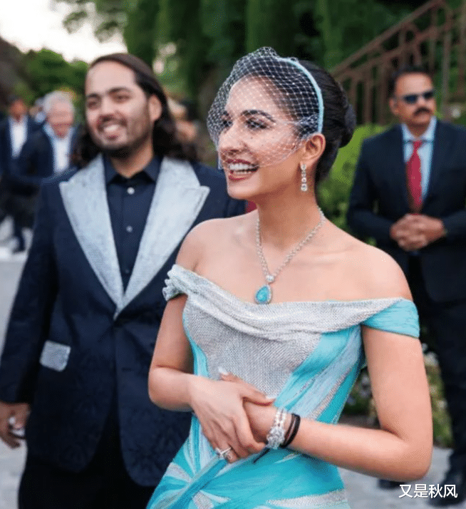 他与小娇妻拉蒂卡婚礼上来宾那富有印度特色与时尚感的“民族风服饰”,就是阿南特的手笔。