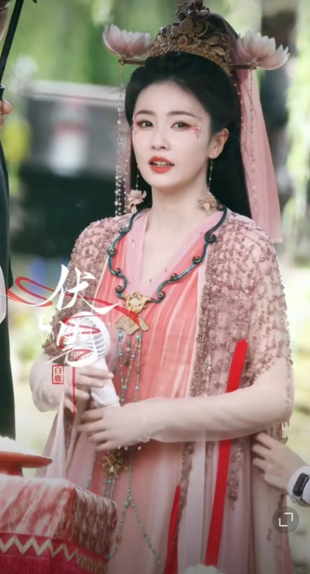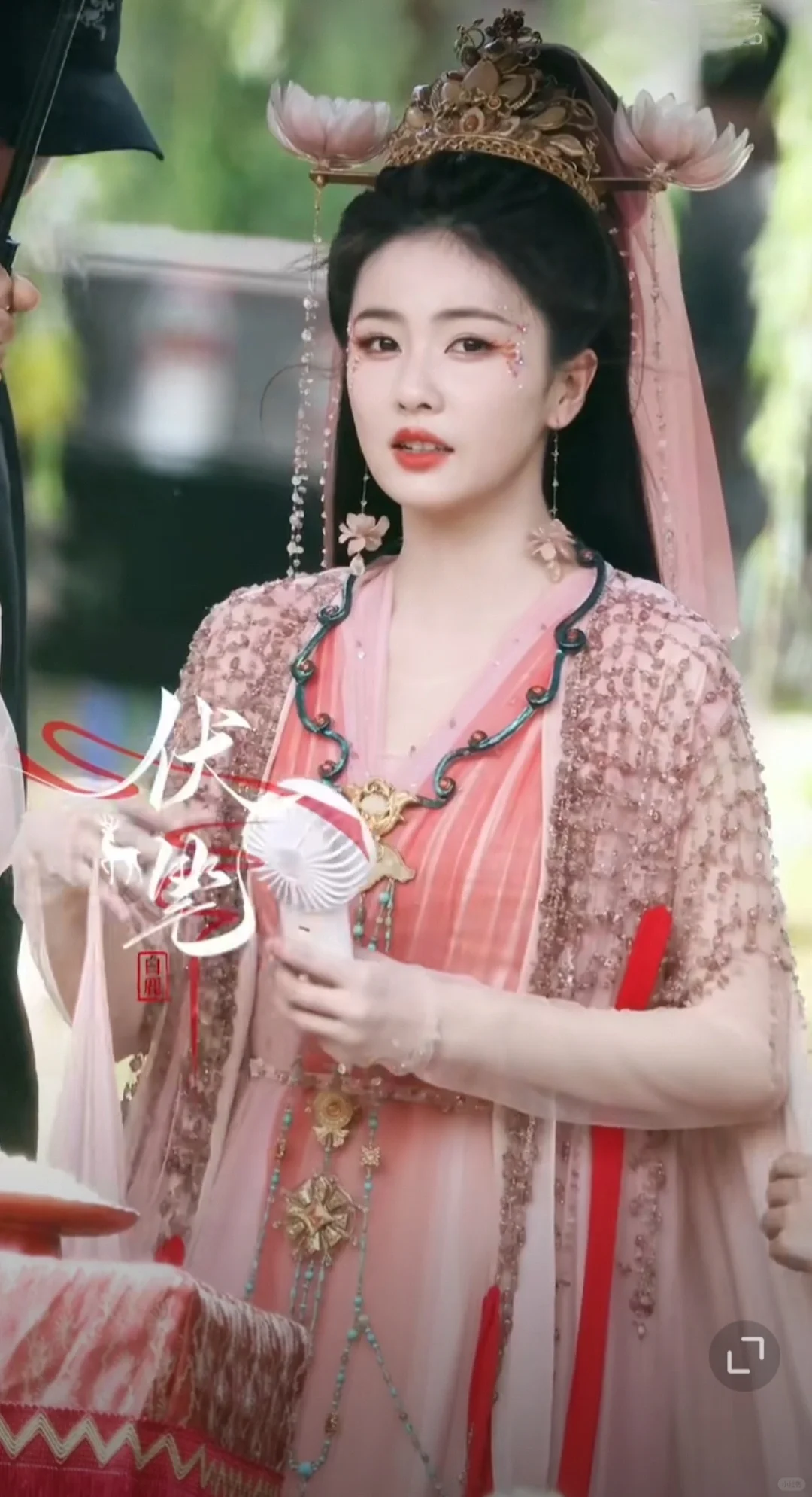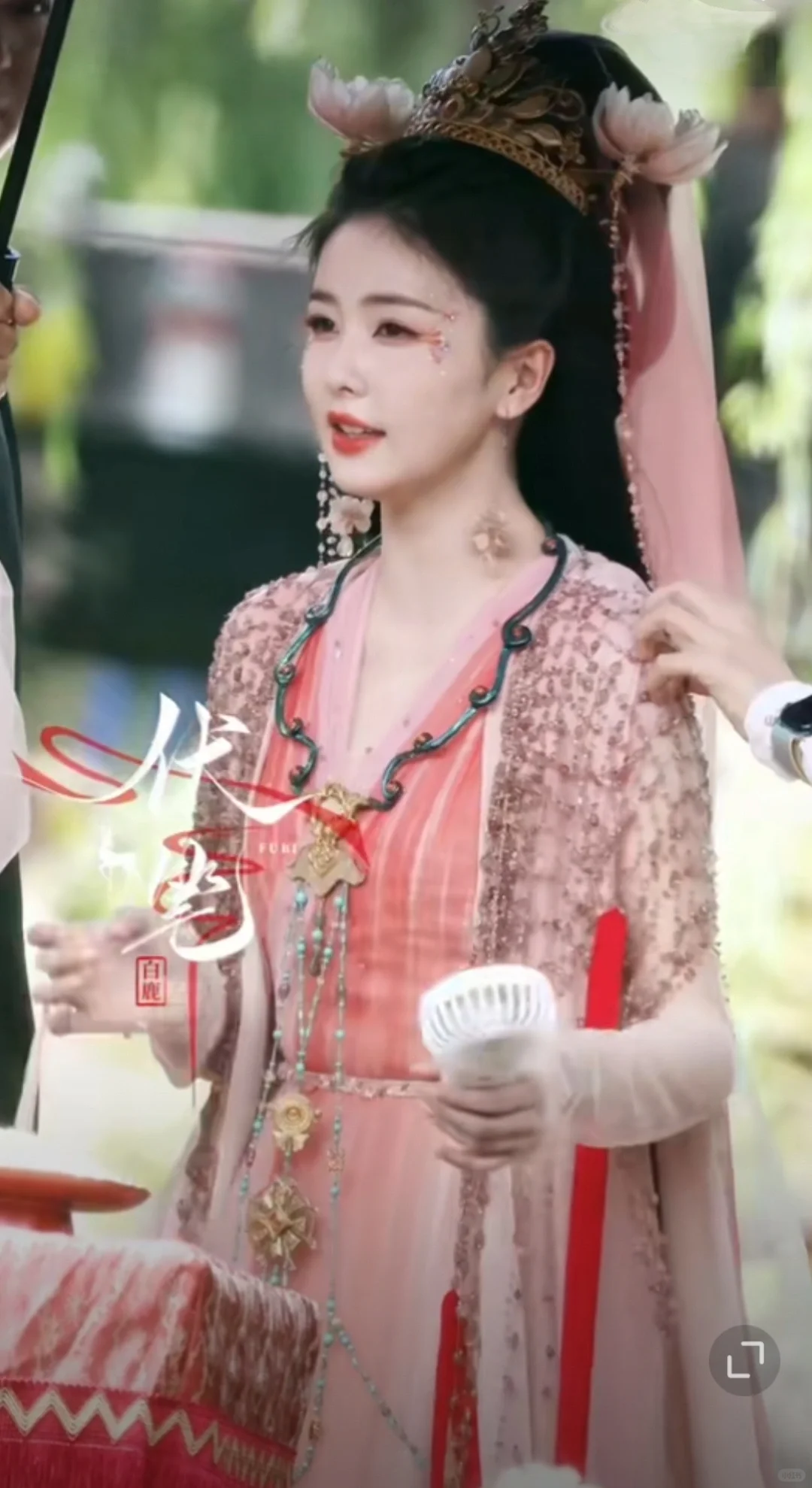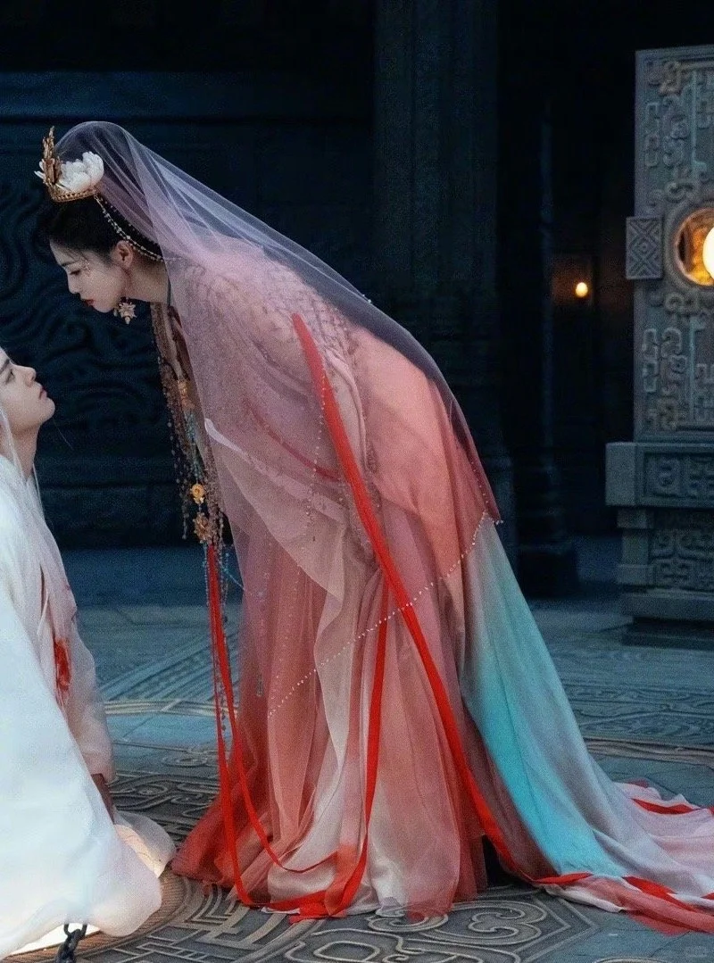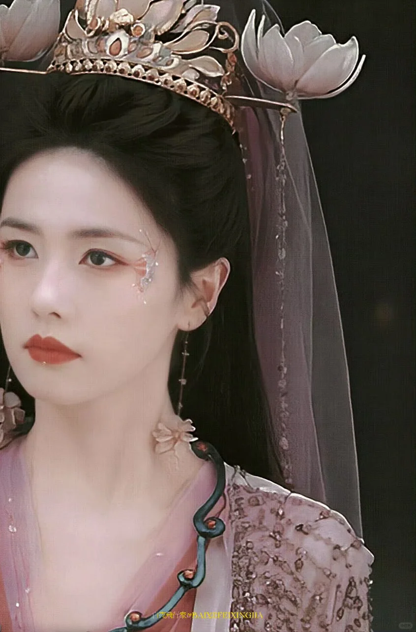 谁家大婚造型长这样?于正家的大婚造型长这样子,真的十年内找不出第二个这种大婚造型 第一眼看着有点怪,第二眼竟然感觉还行,靠演员撑起了这个造型 莲花在发冠两边点缀,和耳环、头纱颜色相称,在光下竟有种莲花宝灯在发光的既视感,莫名带着一点神性,衣服颜色没有设计稿图片上那么红,看起来比较协调一点,造型师倒是都挺有新意的,这个造型现在都找不出第二个类似的