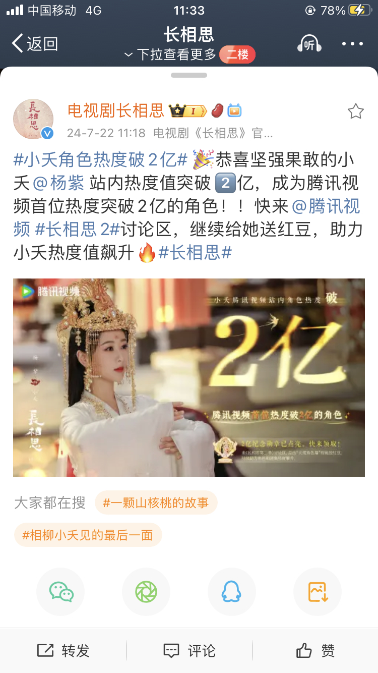 #小夭角色热度破2亿##杨紫小夭# 还未开播小夭热度就1亿,以一己之力拉回了好多