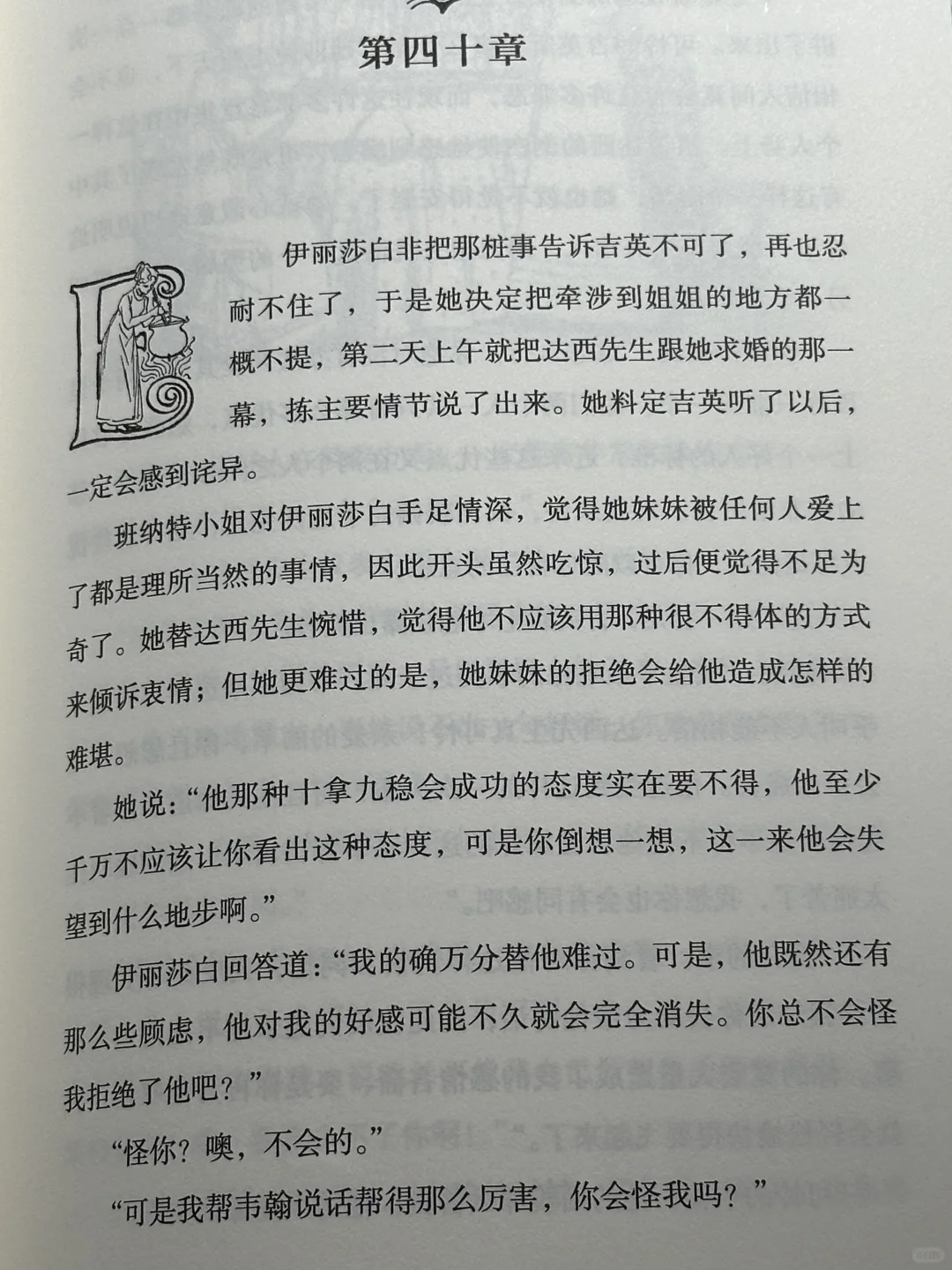 从大学到现在,瑞秋已经记不得这是第几次读这部小说了,不同时间读,感悟也完全不同。以前只是单纯地羡慕伊丽莎白清醒的爱情观和直爽的性格,以及达西先生对她的款款深情,如今再读,对于爱情的感悟也深刻了许多。