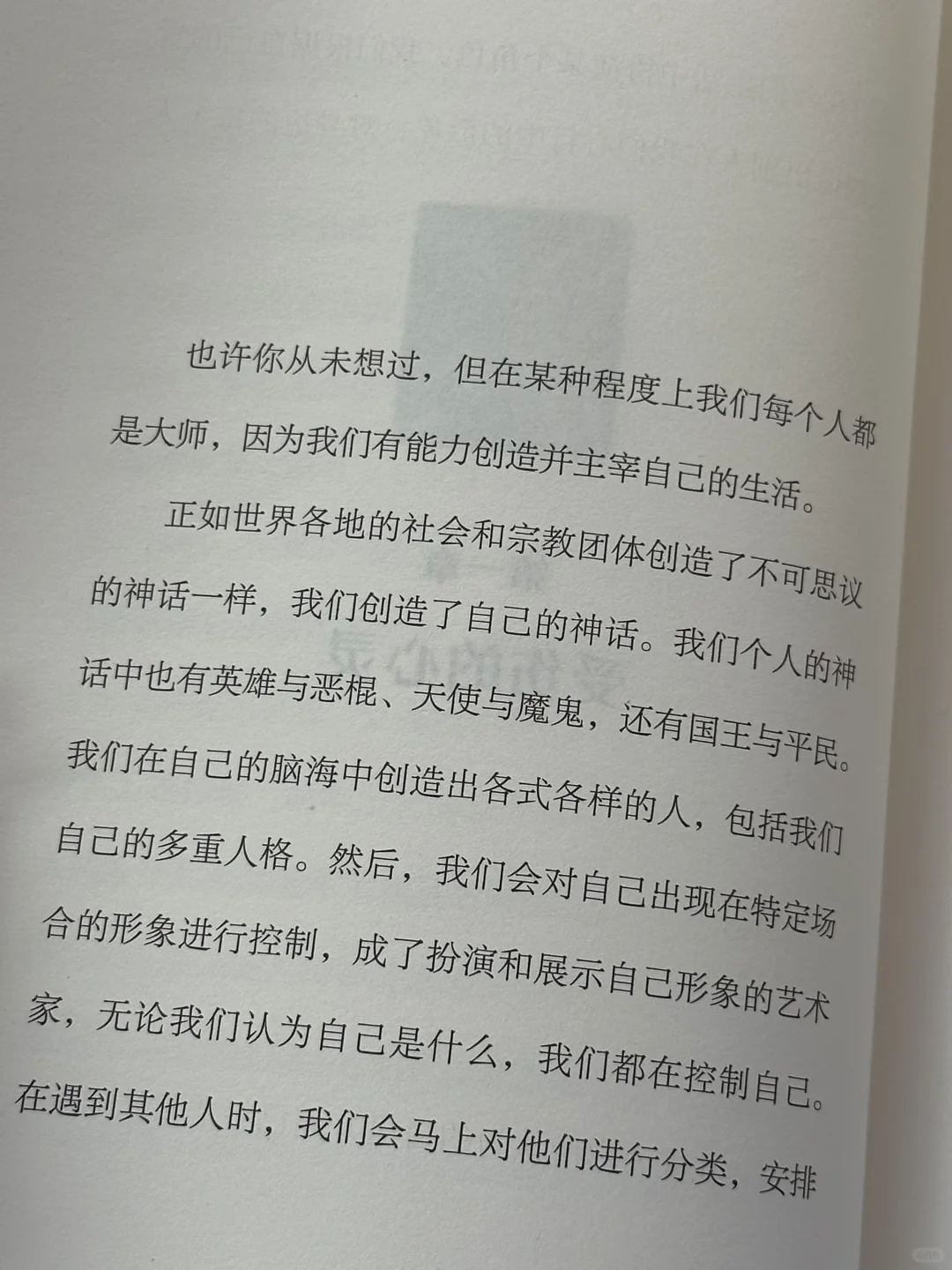 人人都带着一副社会面具,因为看到真实的自我,或者让别人看到真实的我们,都太让人痛苦了。我们为了把别人挡在外面,建起了这些保护的壁垒,但我们也被围困其中,自由受到了限制。