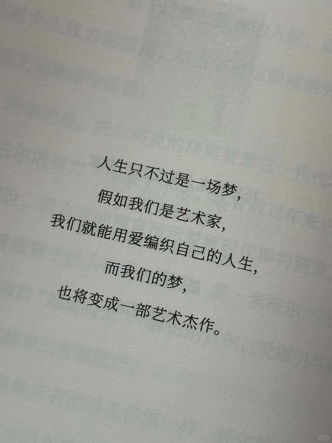 “人生只不过是一场梦,假如我们是艺术家,我们就能用爱编织自己的人生,而我们的梦,也将变成一部艺术杰作。”