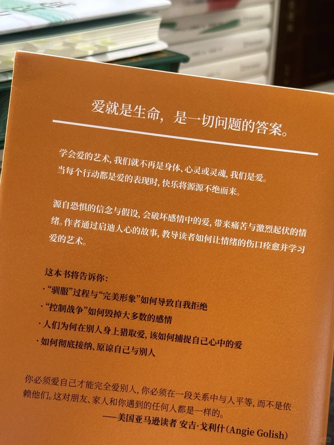 💛读这本书就像在经历一场关于爱的精神洗礼,涤荡后的心灵更加澄澈清明。发现爱、接纳爱、经营爱,悦纳自己,享受充满爱的美好人间。