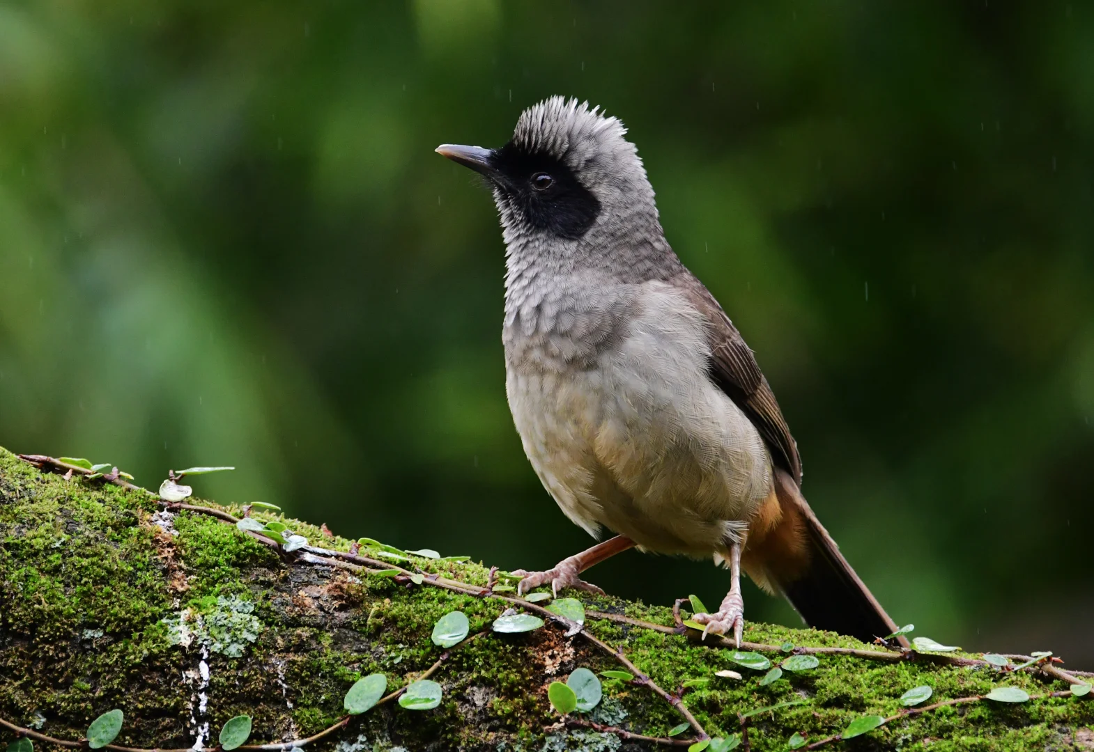 🍃黑脸噪鹛,雀形目,噪鹛科,可爱的鸟鸟世界中,少见的黑脸选手,鸟如其名,它们从前额到下颌再到两颊全是黑色的,正面看过去就像戴了一个炫酷的黑色脸罩。