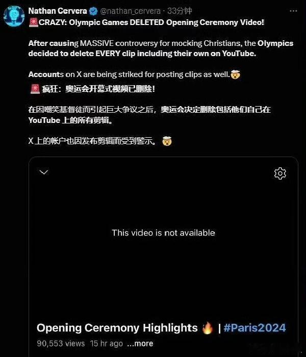 #奥运会官号删除巴黎开幕式视频#奥运会官号删除巴黎开幕式视频