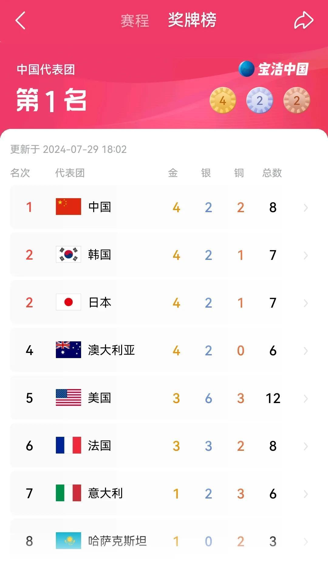 中国甩开日、韩独享奥运金牌榜第一! #夏季日常随手拍#