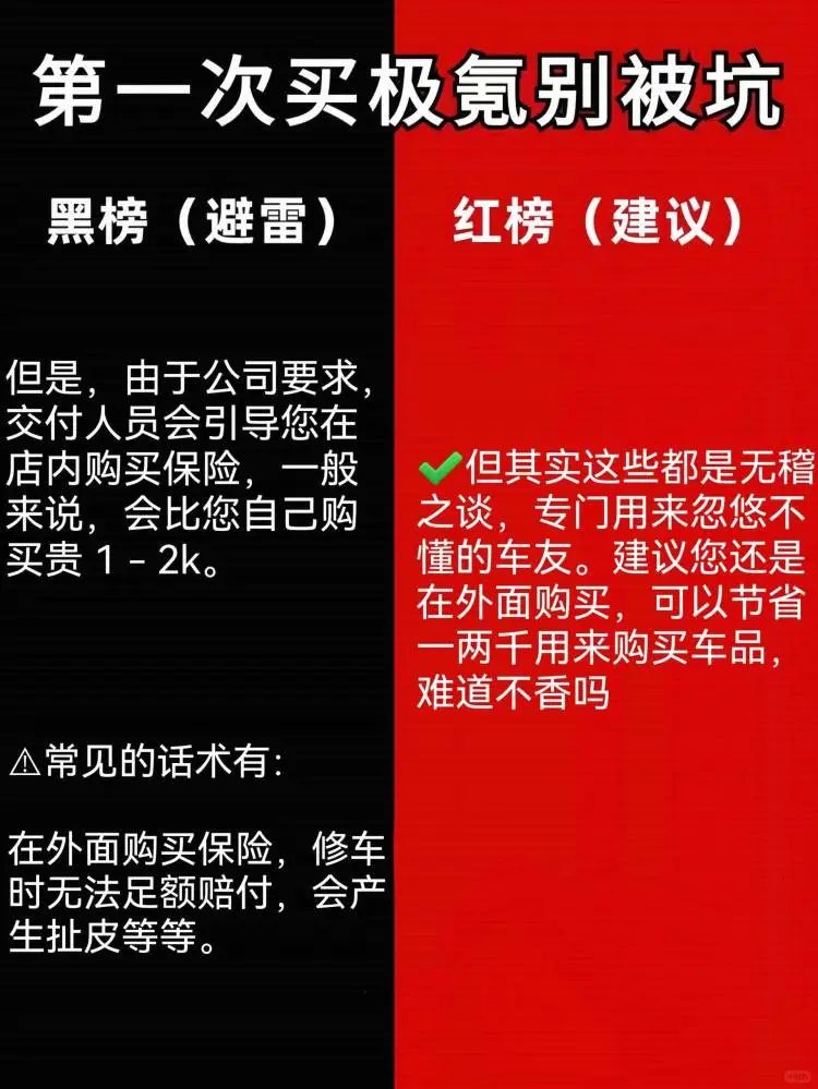 极氪不强制要求您在店内购买保险,这一点相比传统4S店更为人性化。然而,交付人员通常会引导您在店内购买保险,这一般比外面贵1-2千元💵。常见的话术包括在外购买保险可能无法足额赔付等,但这些通常是不实的说辞。建议您在外面购买保险,可以节省一两千元用于其他车品。