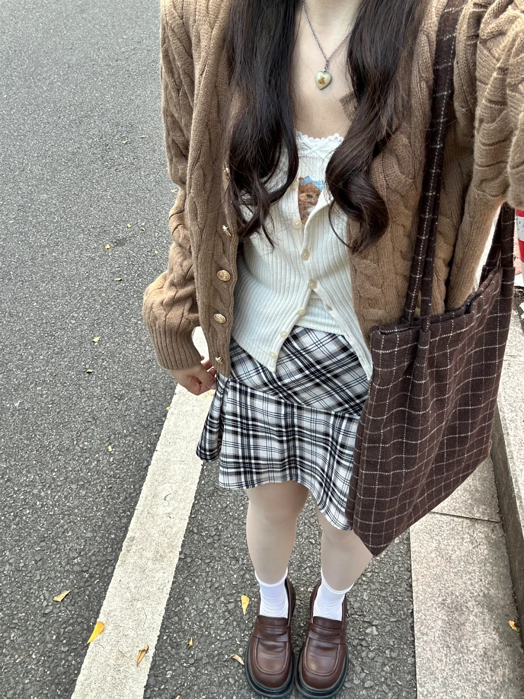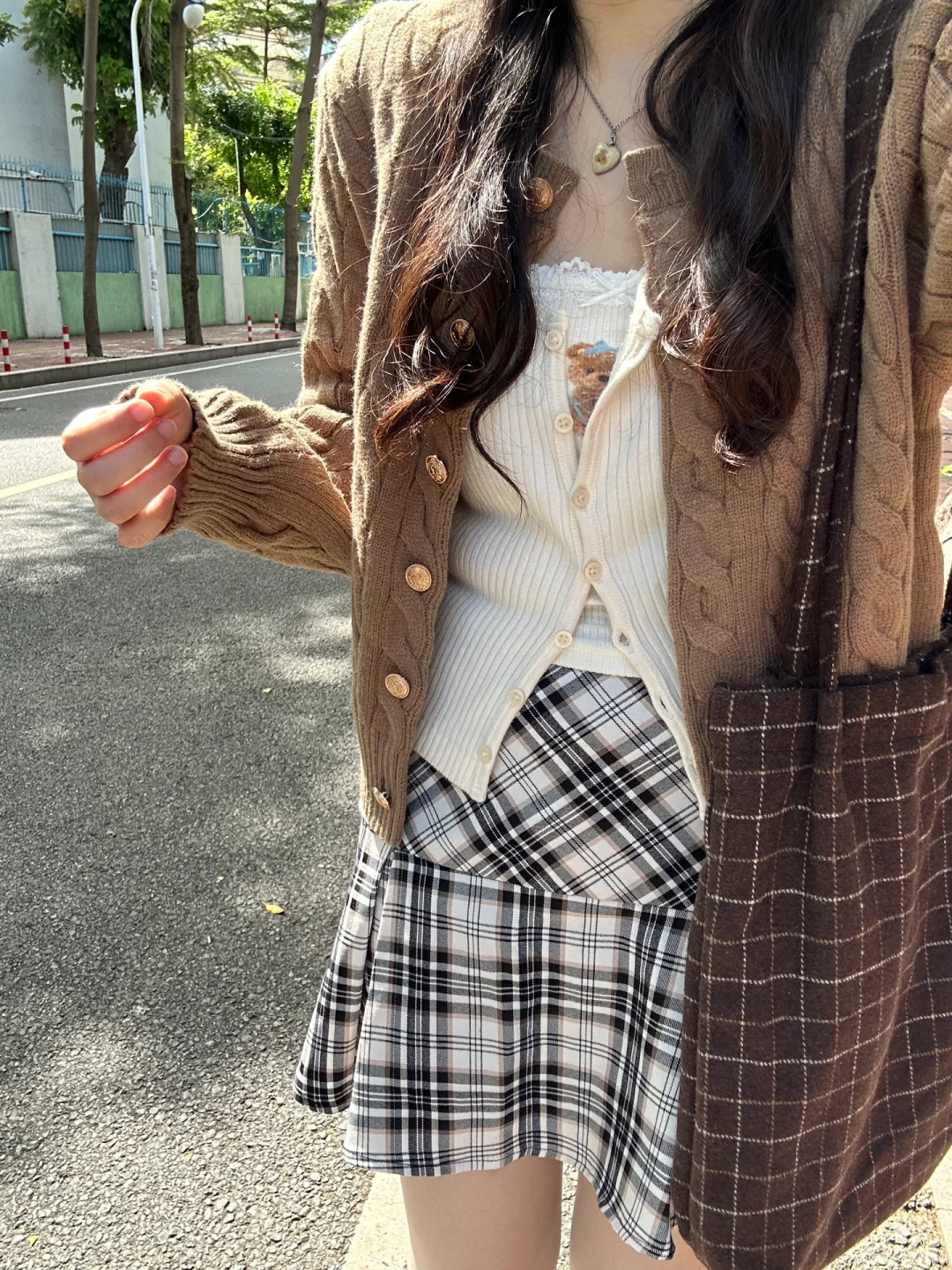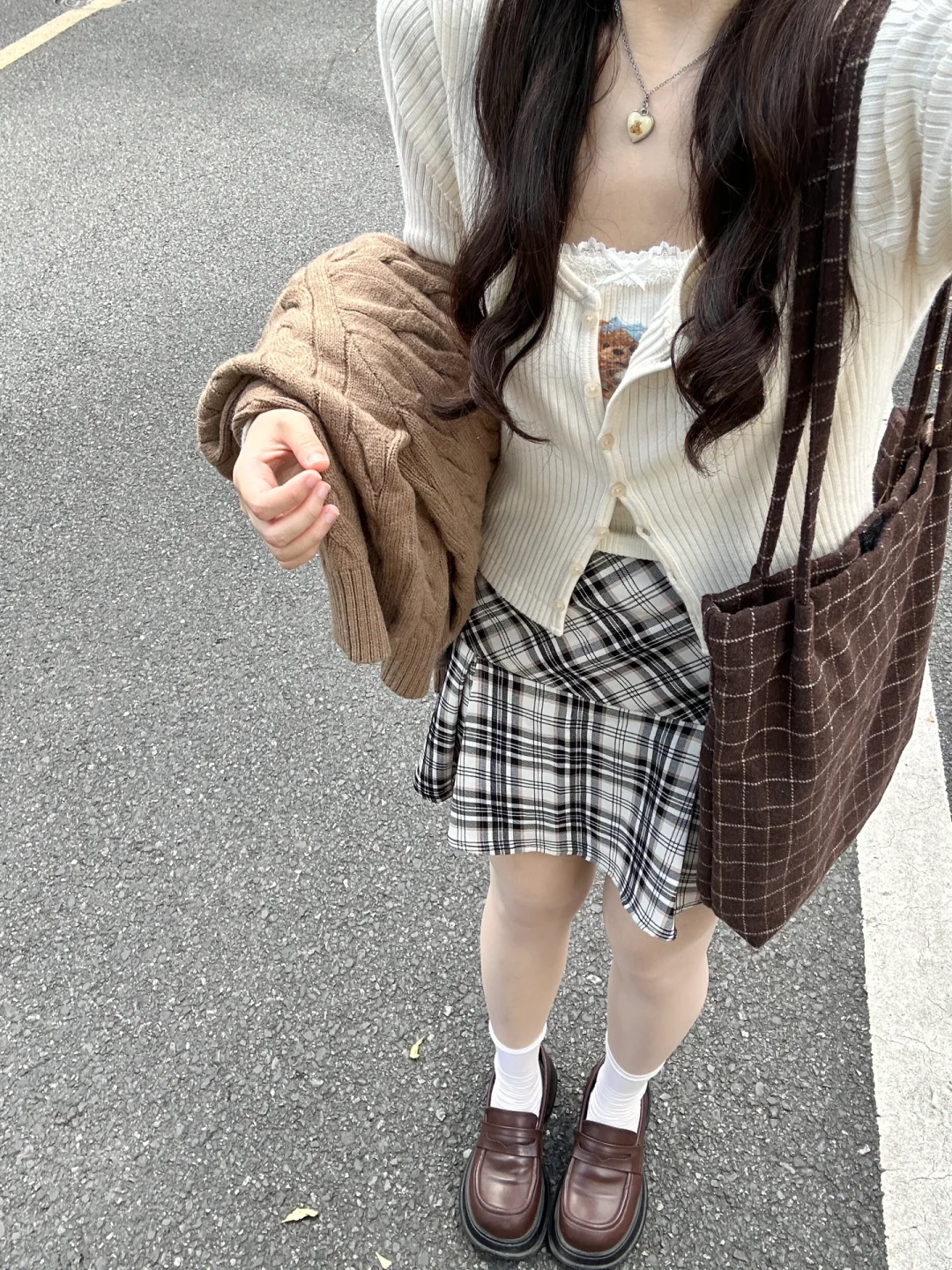 Bm zellytop➕小熊吊带➕卡其针织➕格纹裙