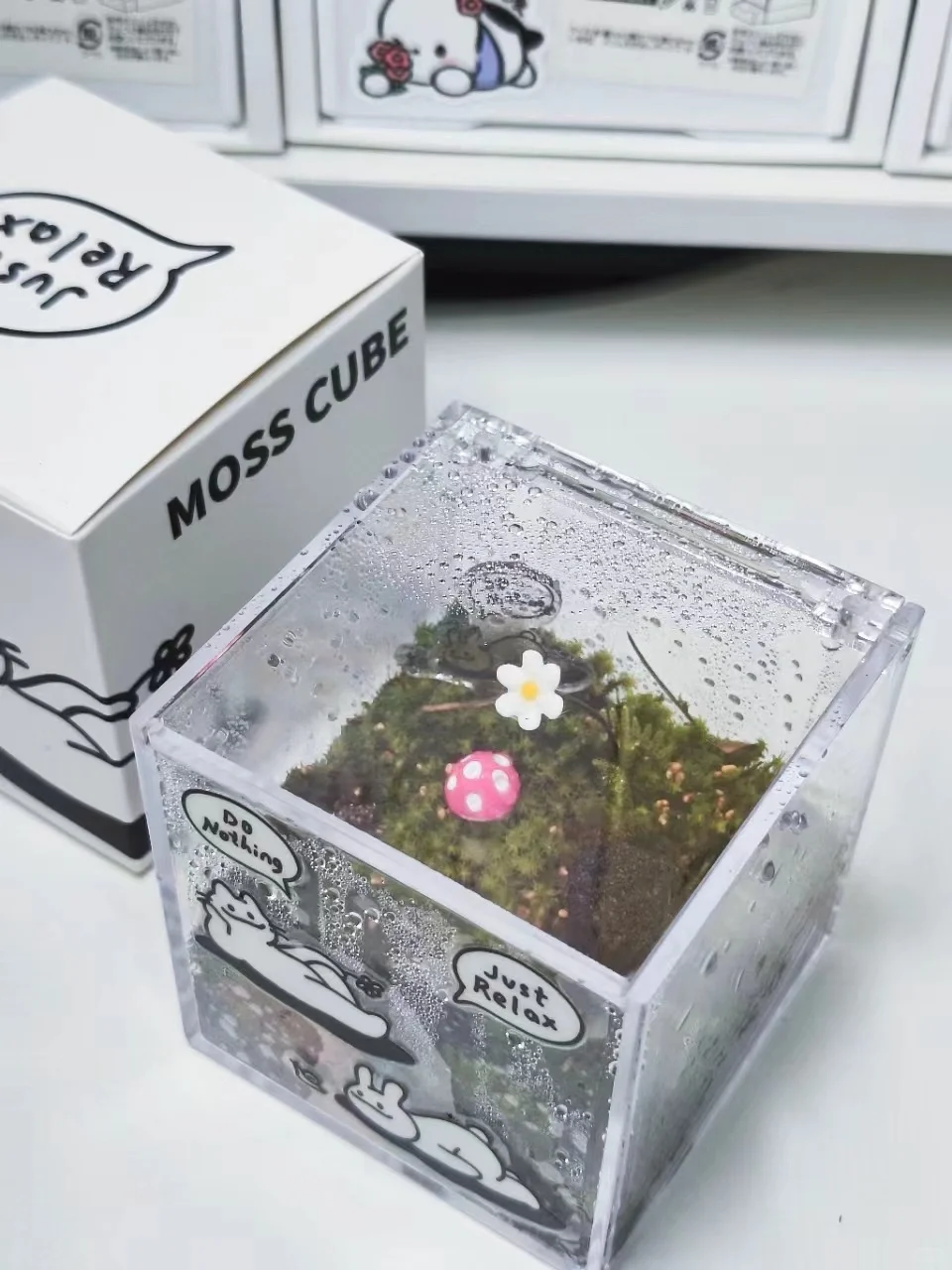 ✨厌倦了电脑屏幕的冰冷,是时候在办公桌搞一抹鲜活的绿意🌱啦~这个盒子里就是一个晶莹剔透的小世界里呢~每个人都可以拥有私人小森林啦!🌿 ✨作为桌面绿植,苔藓微景观体积小巧,便于摆放和移动,非常适合放在办公室桌面上。对光照和水分的要求不高,很容易养护,简直打工人专属~可太爱了💓 ✨一点点种植Tips; 苔藓喜欢散射光,避免☀️阳光直射。因此,应将其放置在室内光线明亮但不强烈的地方~ 保持💦湿润的环境,但不可过湿以免导致腐烂。一般每周喷水2-3次,保持土壤微湿即可~