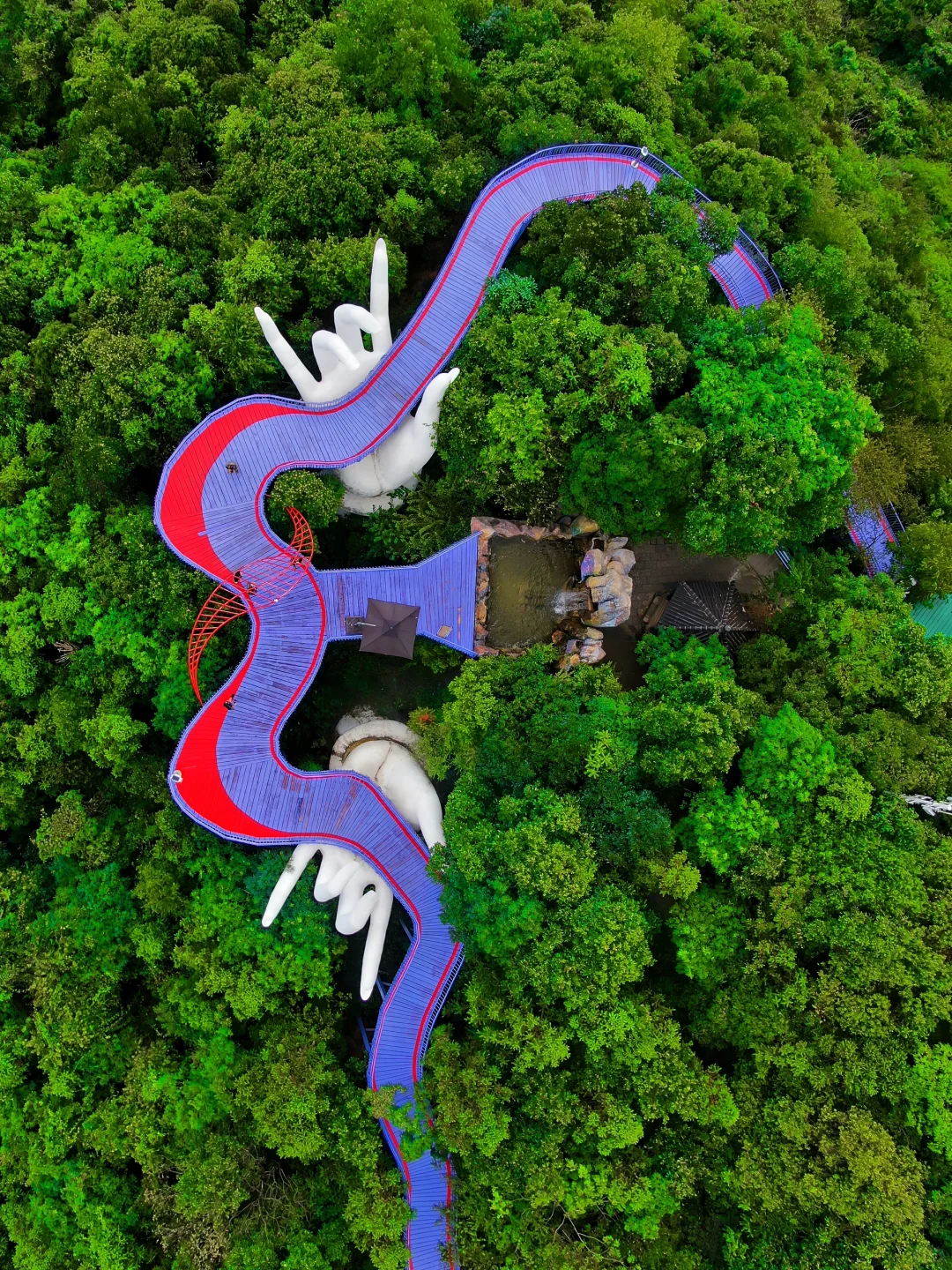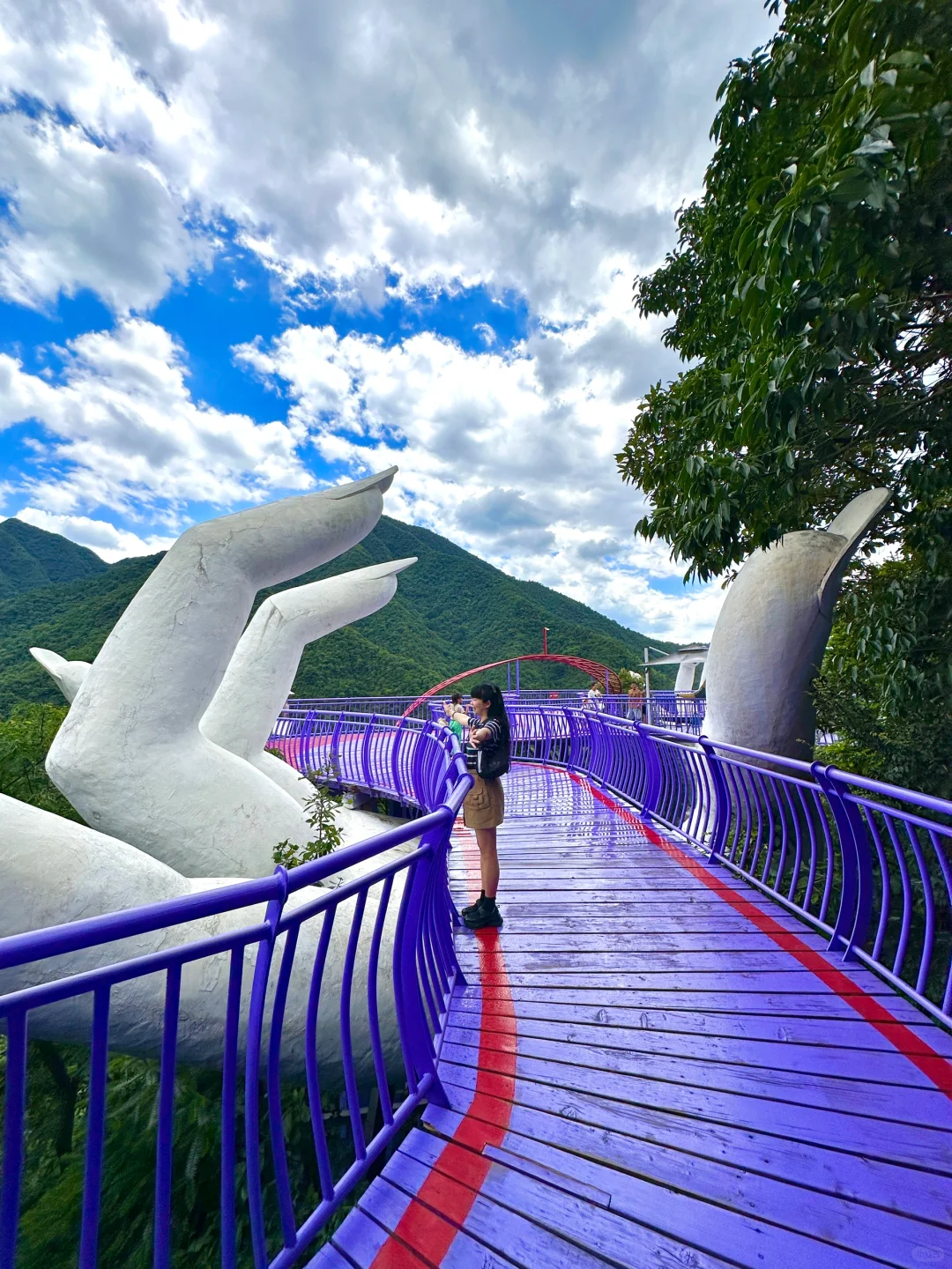 山谷中的紫色栈道,两只巨大的手托非常震撼了我的视觉体验,不去看看都无法言语描述