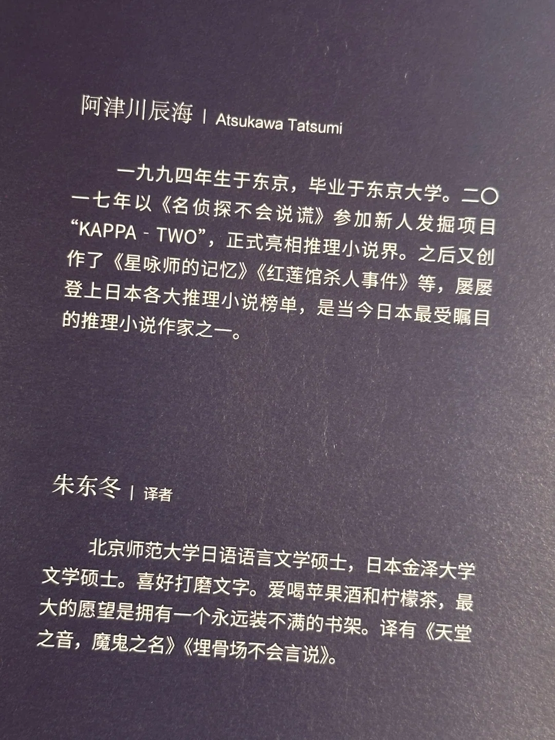 作为阿津川辰海“馆系列四重奏”的第二部,故事沿用了经典的“暴风雪山庄模式”,作者的描写引人入胜,将紧张刺激的氛围烘托到极致的同时,故事的节奏感又把握得恰到好处,酣畅淋漓,读来令人大呼痛快‼️