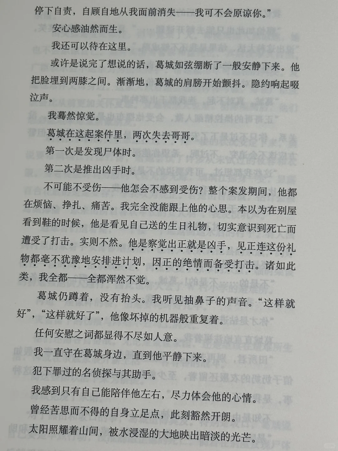 在这个故事中,作者对于人物塑造的能力属实惊艳到了我。让我一下子有了看名侦探柯南的惊喜感,少年名侦探在面对亲人离世时的痛苦和背后真相时的内心挣扎,被作者的文笔精妙地表现了出来,人物更加立体丰盈,故事更加牵动人心,真的很难不爱啊!