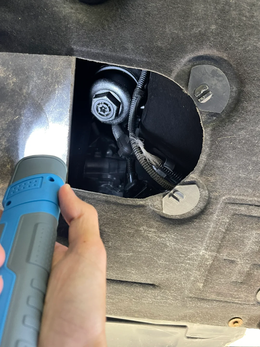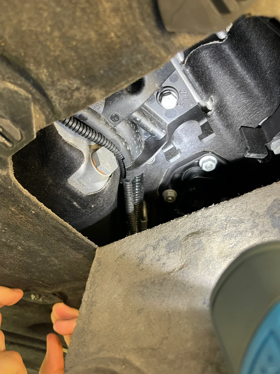 试驾完 看底盘的时候 管路一切正常 除了排气管的一点锈迹 其他都很干净 无渗漏
