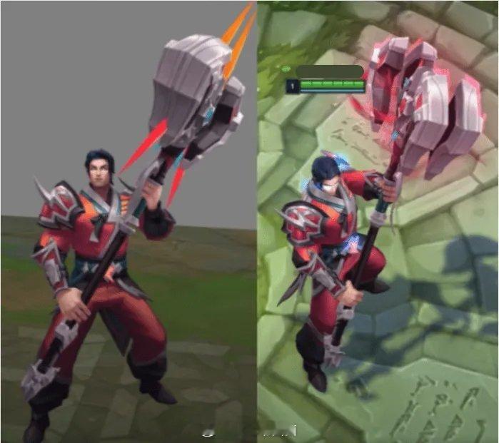 今日测试服对T1冠军皮肤炫彩色彩进行更新:减少橙色,增加红色/粉色,整体变为暗红/玫红,其中巴德的色彩更新目前还未上线(左图为旧,右图为新)