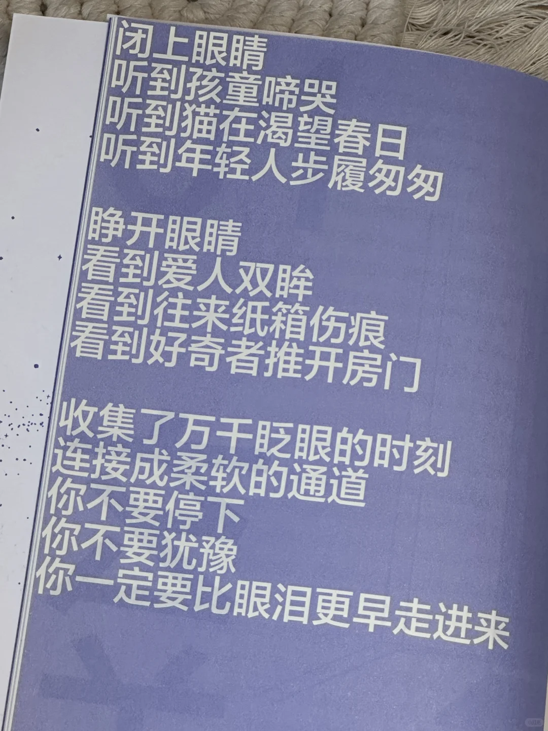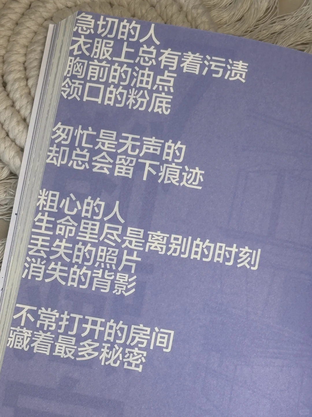 爱情有轰轰烈烈的样子,也有细水长流的温存,就像这本小书封面“不易破碎”的紫色专色印刷,不浓烈不耀目,却自带一种独特的魅力,能直直地折射到人的心底里。