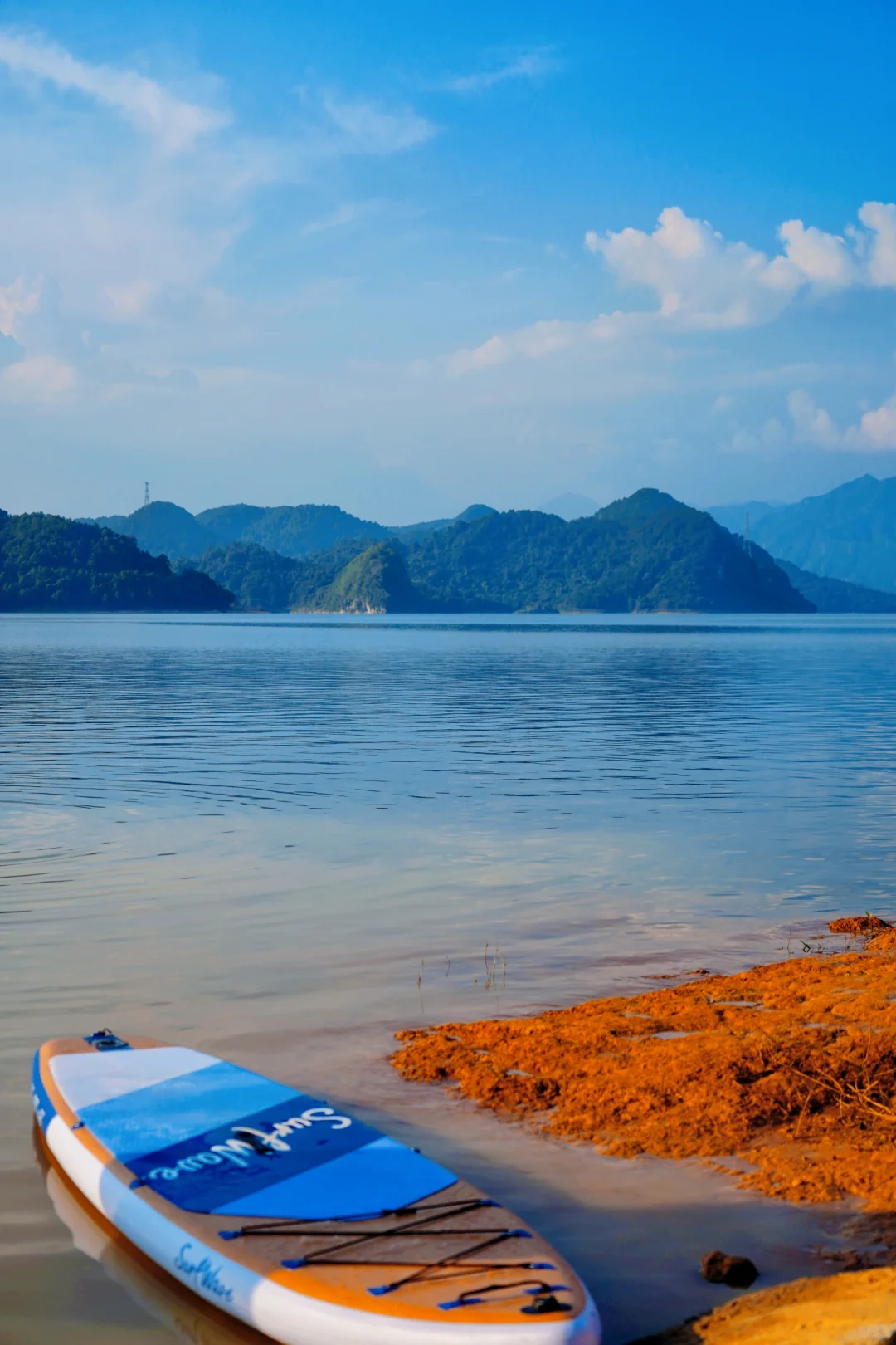 湖水晶莹剔透,阳光下波光粼粼,沿岸青山连绵,瑶寨竹木楼掩映在绿树丛中。沿着湖边漫步,吹着清凉的风,很是惬意。