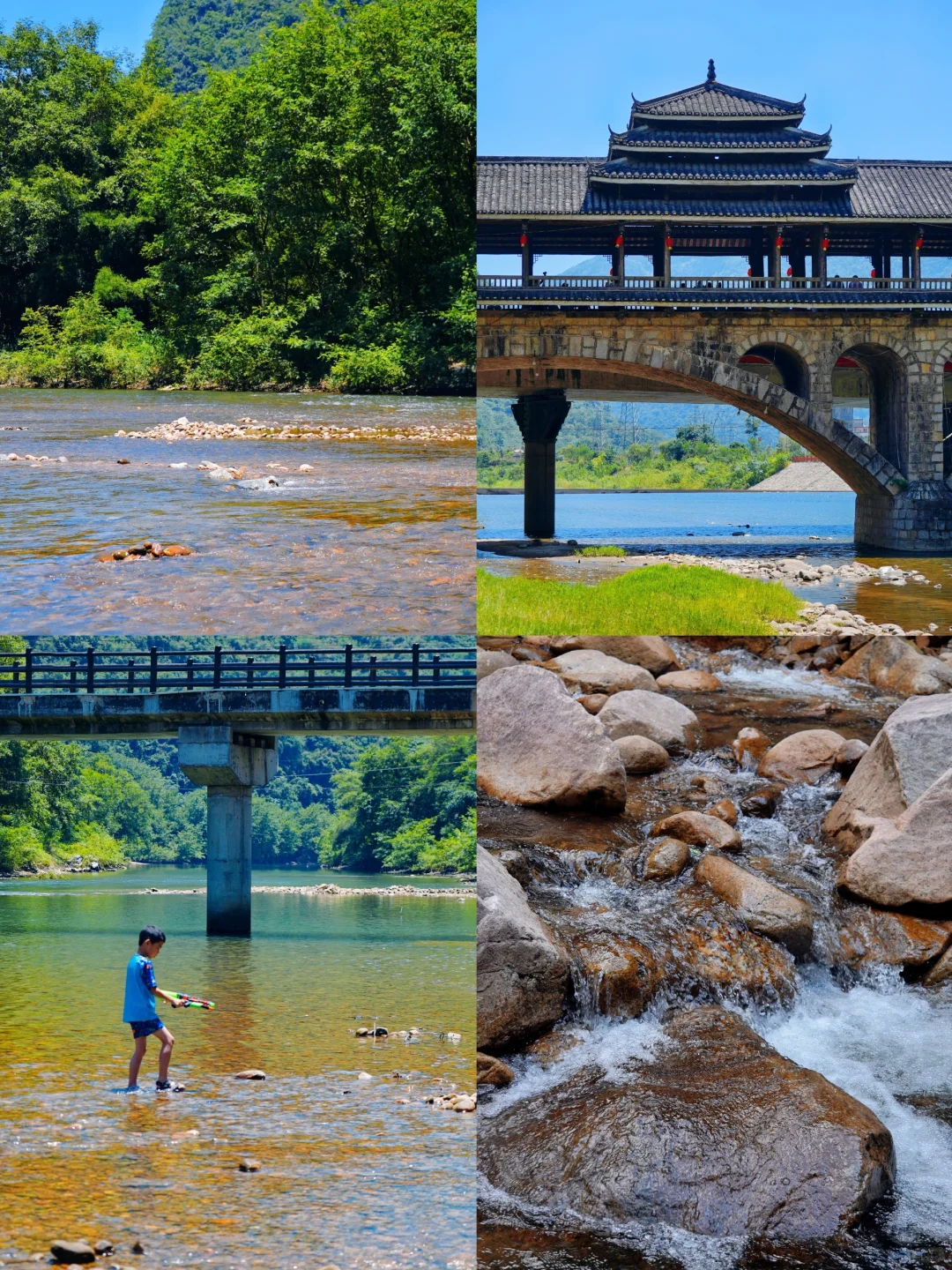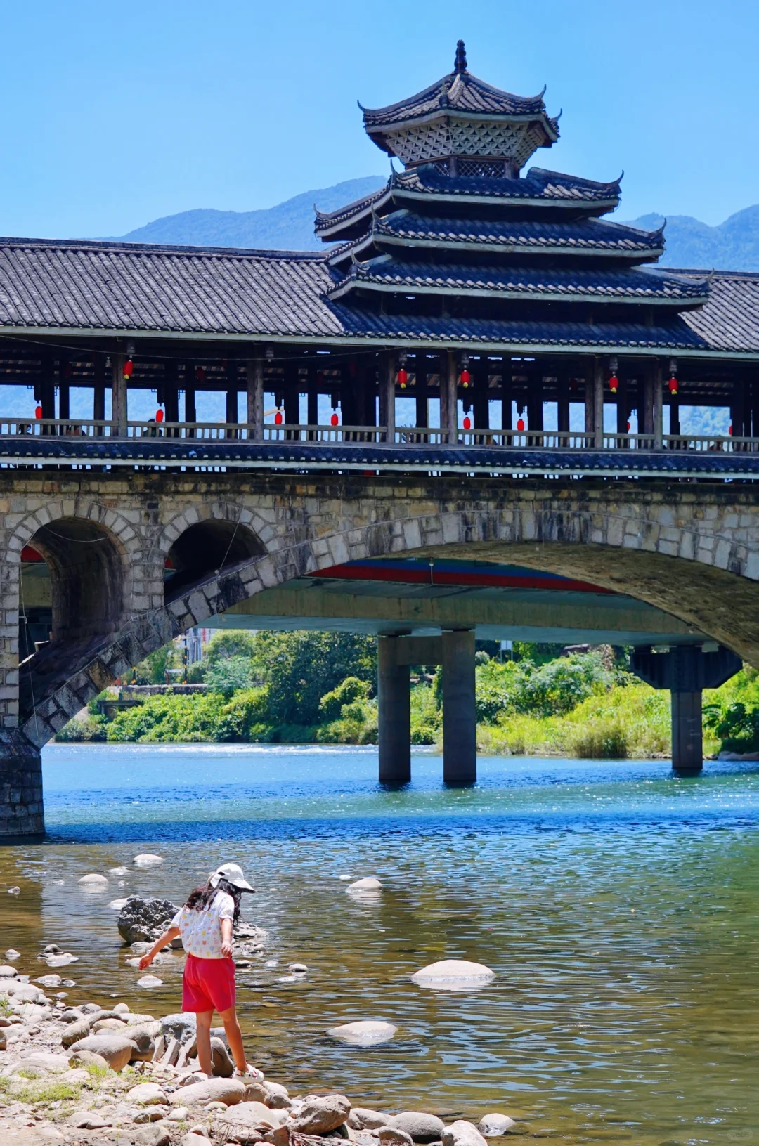 ①、行驶在323国道上,有种沿路开盲盒的快乐:途经州记阳山岭背汽车露营基地,清澈见底的浅滩是夏日玩水的天堂;古朴的善美康桥将当地民间建筑工艺展露无遗;龙潭角瀑布下的潭水在阳光照耀下,像果冻般透明……沿途这些游玩地不仅好玩又好拍,还全都免费!