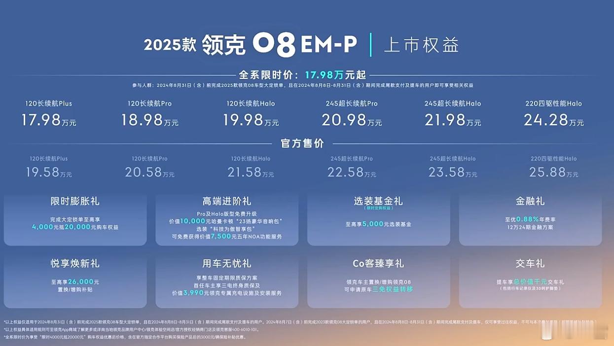 售价上面,2025款领克08 EM-P全系限时价:17.98万元起 #2025款领克08全面升级##18万的领克08降维打击#