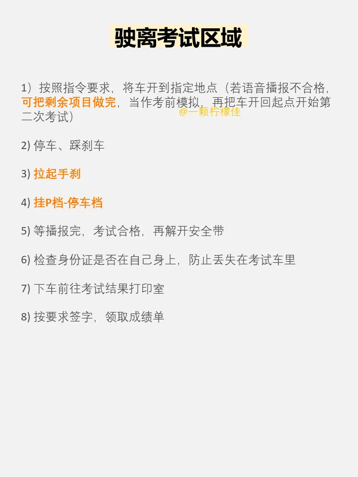 挂P档,拉手刹、回正方向盘、解安全带、下车、考试通过🙋🙋🙋🙋