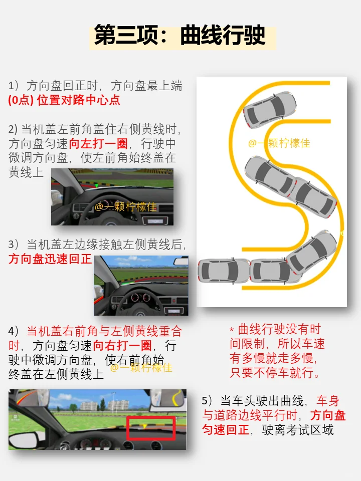 今天来分享一波科目二考试全流程:侧方停车-上坡-直角转弯-曲线行驶-倒车入库。