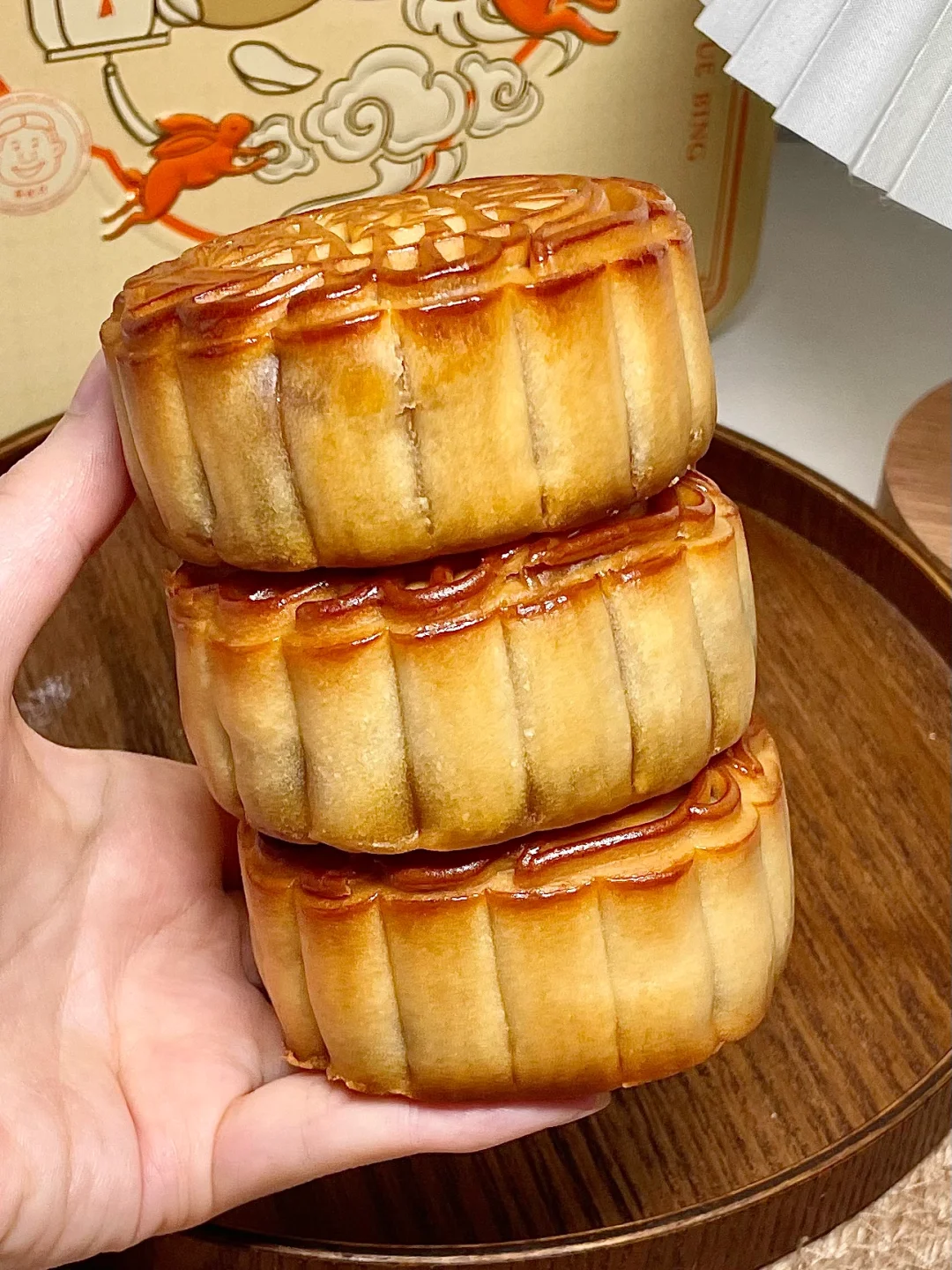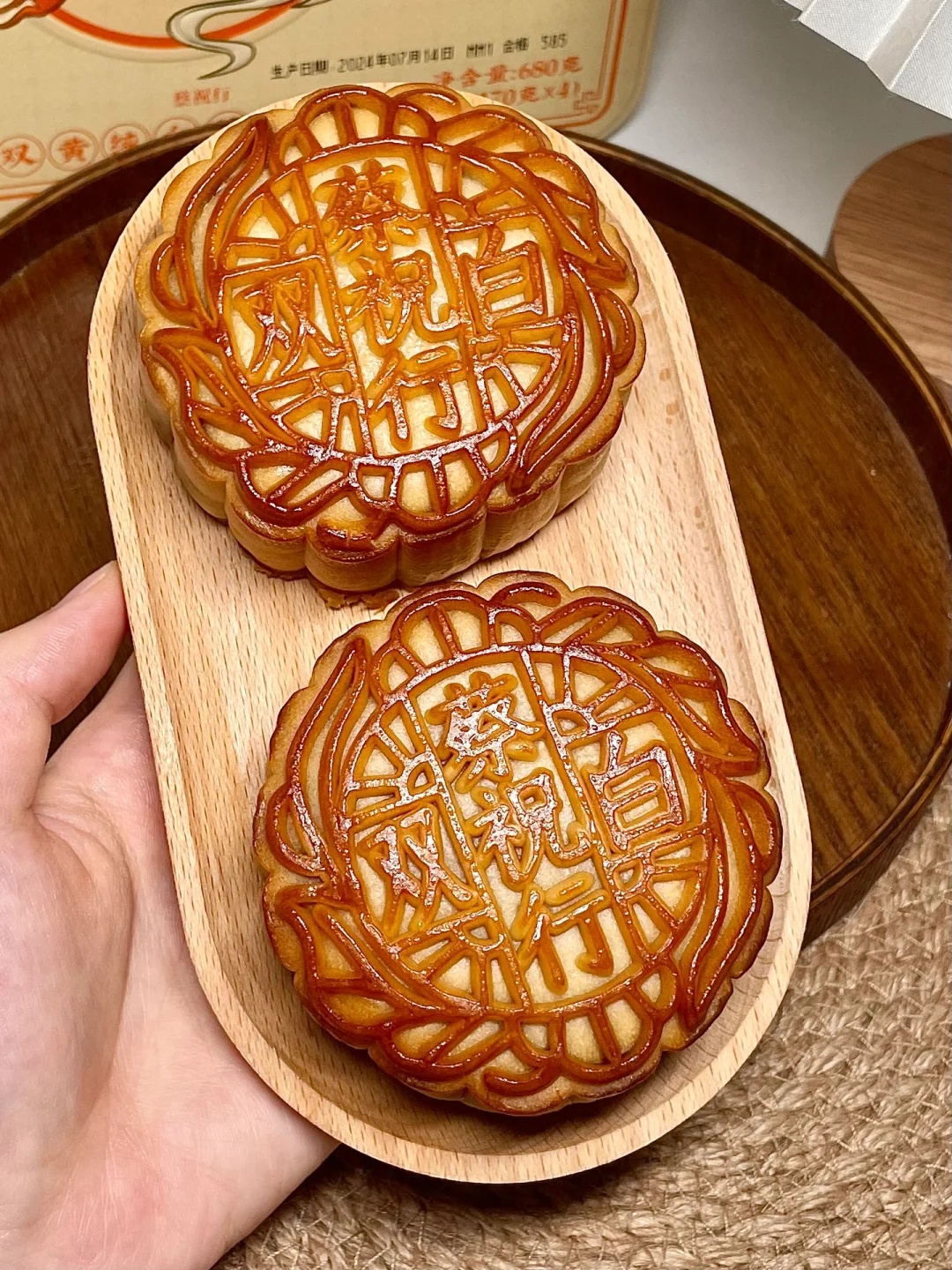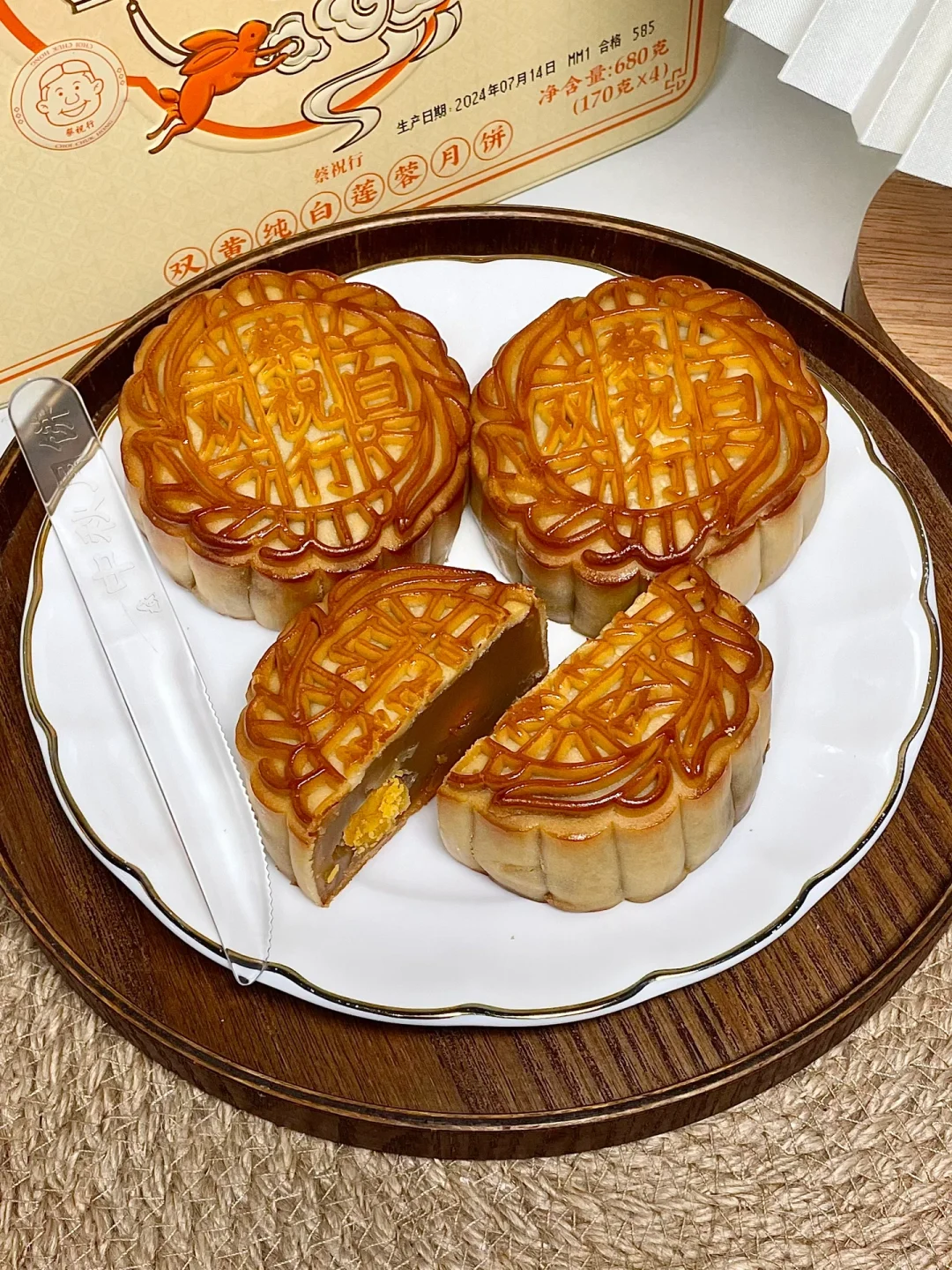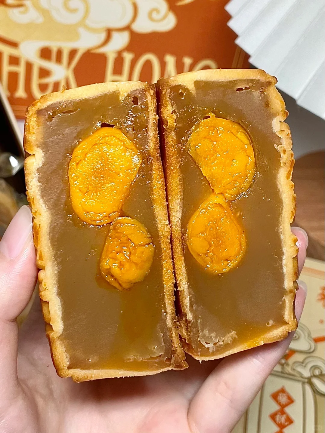 又又又一次被这种老式月饼惊艳到!! 对半切开里面竟然是双黄的!色泽金黄贼有食欲! 还能流油的!谁懂??? 软和的冰皮➕沙沙糯糯的蛋黄➕白莲蓉! 一口咬下去真的巨满足!! 月饼很大一个!自带刀叉可以切成小块和全家人一起分享! 广州酒家生产的月饼🥮是真的🉑! 礼盒包装!中秋送礼也合适! 喜欢糕点的姐妹们一定别错过!!