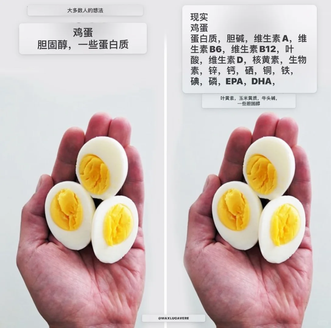 ⏺️鸡蛋是胆碱(仅次于牛肝)的主要来源。研究人员认为胆碱起到了保护大脑健康的作用。