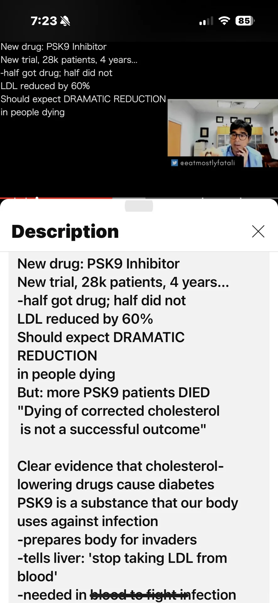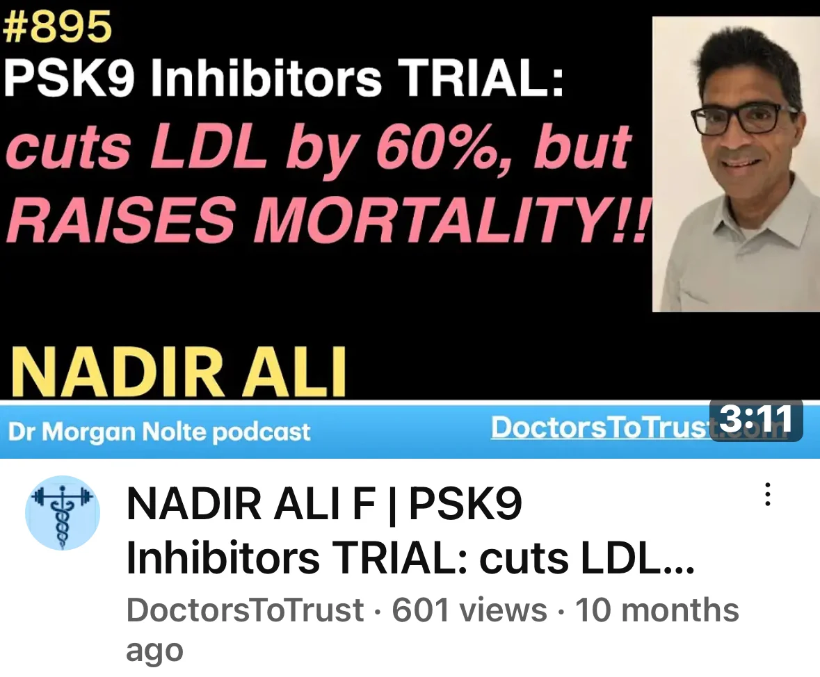 ⏺️以上是制药公司对这种💉的总结,著名心脏外科手术医生奥瓦迪厄和心脏病专家阿里医生指出,PCSK9药效研究有28000人参加,其中14000人注射PCSK9💉,低密胆固chun下降了60%,这个效果非常好。两组si亡率对比也应该和降低密的ji果对应一致,但是却恰恰相反,PCSK9组的si亡率却比没有注射这种💉的组高。可惜没人说具体高出多少。