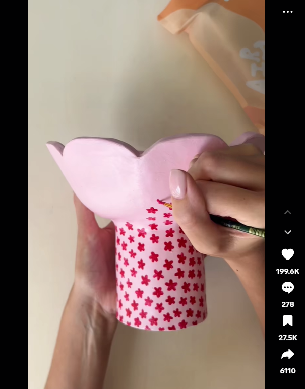 在TikTok上,他们不教复杂的陶艺技巧,而是用14秒的加速教程,展示如何轻松做出一个水果盘、一个卡通造型的烛台。
