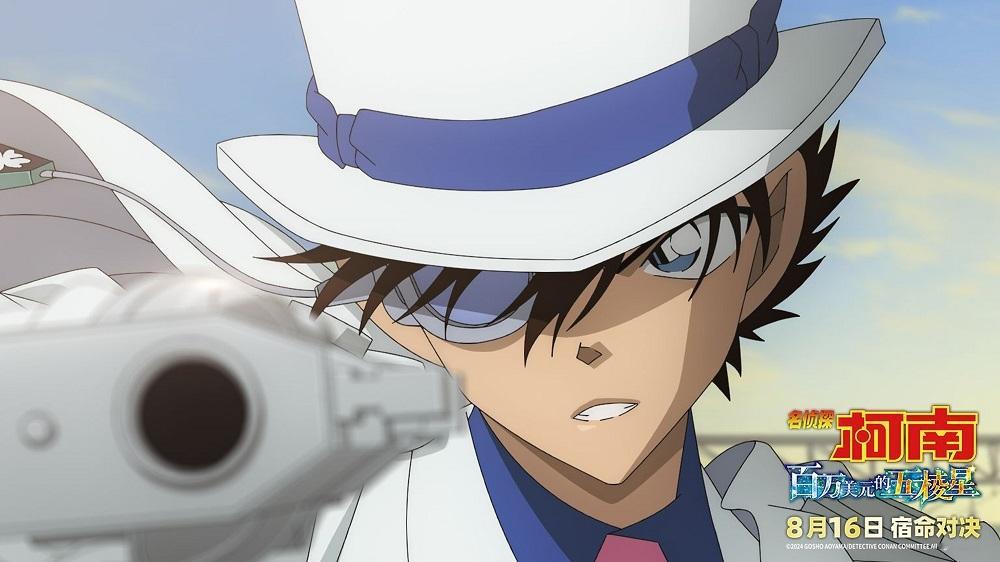 《名侦探柯南》第27部剧场版《#名侦探柯南:百万美元的五棱星#》今日发布“宿命之战”海报,海报上除柯南外,怪盗基德、服部平次、远山和叶等角色一一亮相。电影将于8月16日正式上映。今日发布的海报中,名侦探柯南与服部平次紧紧依靠,眼神中透露着坚定,似乎俩人又将并肩作战。基德脸上则是意味不明的笑容,身旁的大字写着“终于被揭晓的,基德的真相”,结合远处的夜景、滑行中的缆车,让人不禁猜测,基德的秘密究竟是什么,这次是不是终于要公开了?