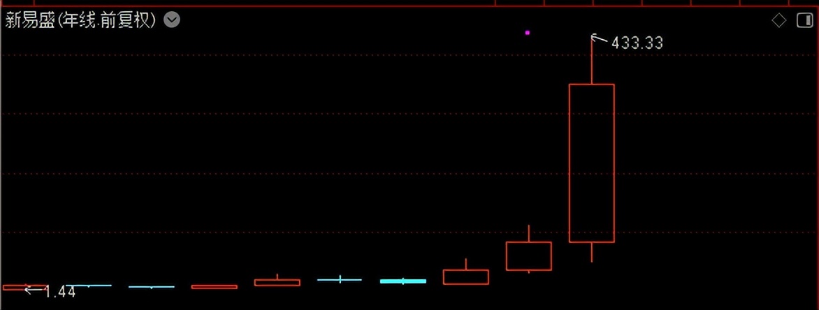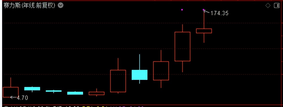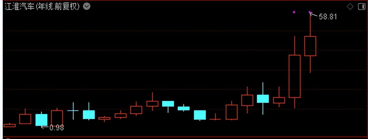 大家可以分别看一下K线图再感受一下(注意都是年K线):