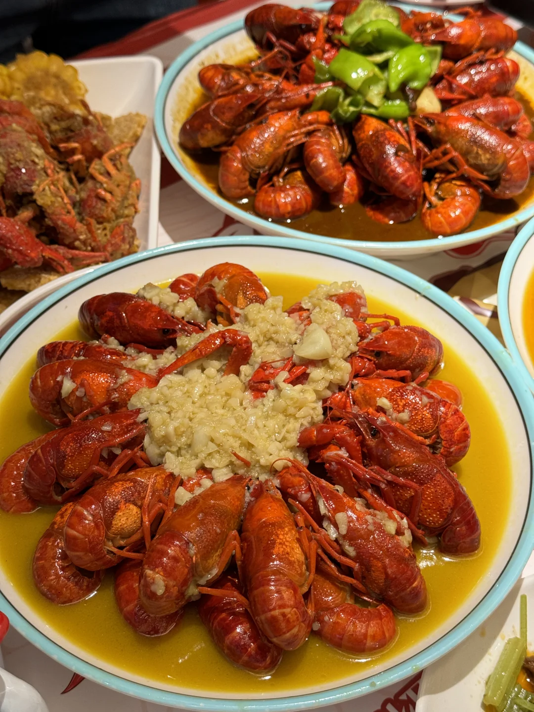 头一回吃到戳牛肉🐮真的太好吃啦!!! 感觉像在吃一份巨大的烧烤,调味的刚刚好,太适合没有食欲的夏天啦~~~ 他家的龙虾🦞隔三差五就要去吃一回。 虾肉特别饱满,而且特别入味,蒜泥、十三香、油焖、咸蛋黄🦞,就没有不好吃的。 吃完还要再加一份面条🍜拌着吃,好吃哭了!!!